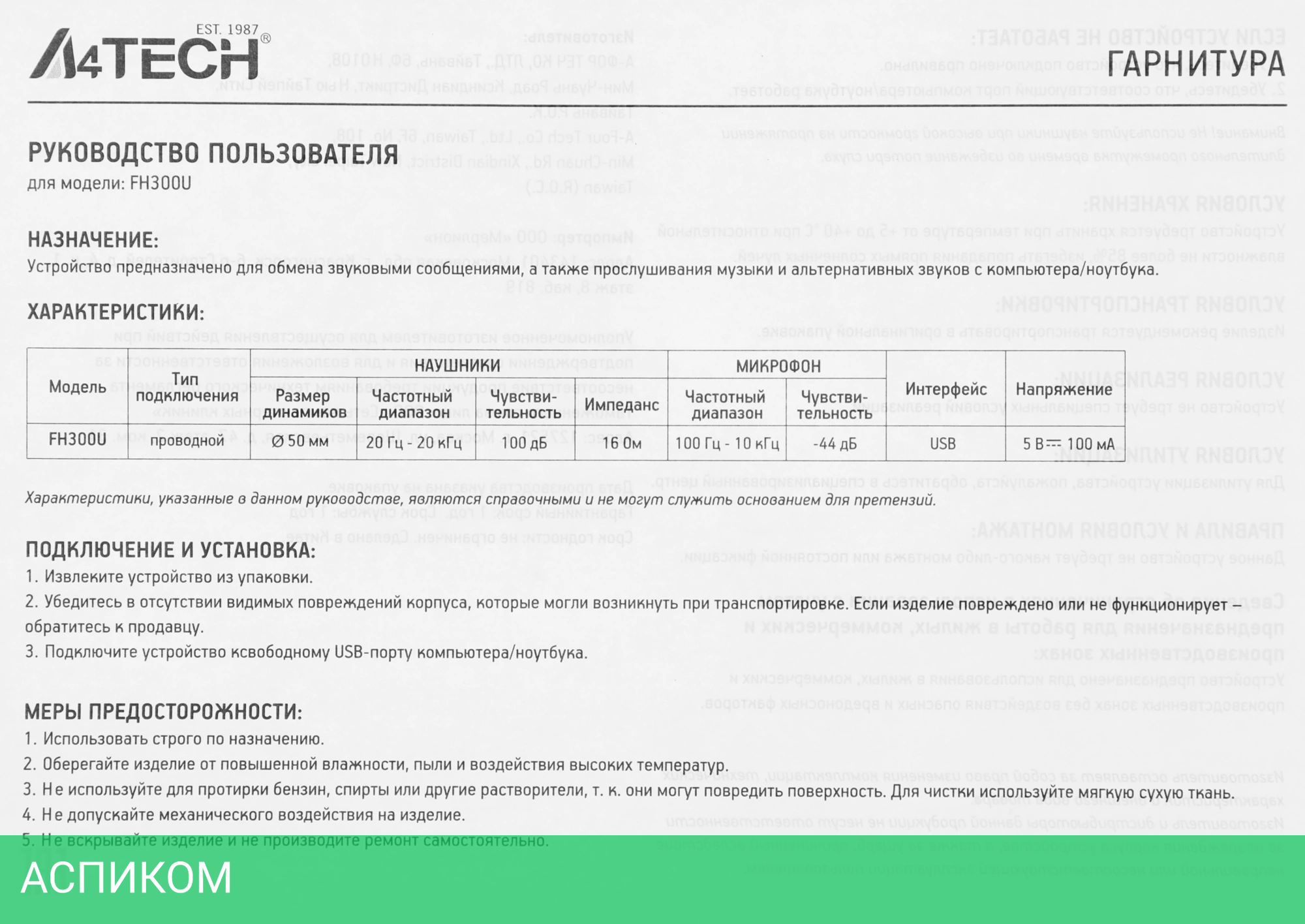 Характеристики