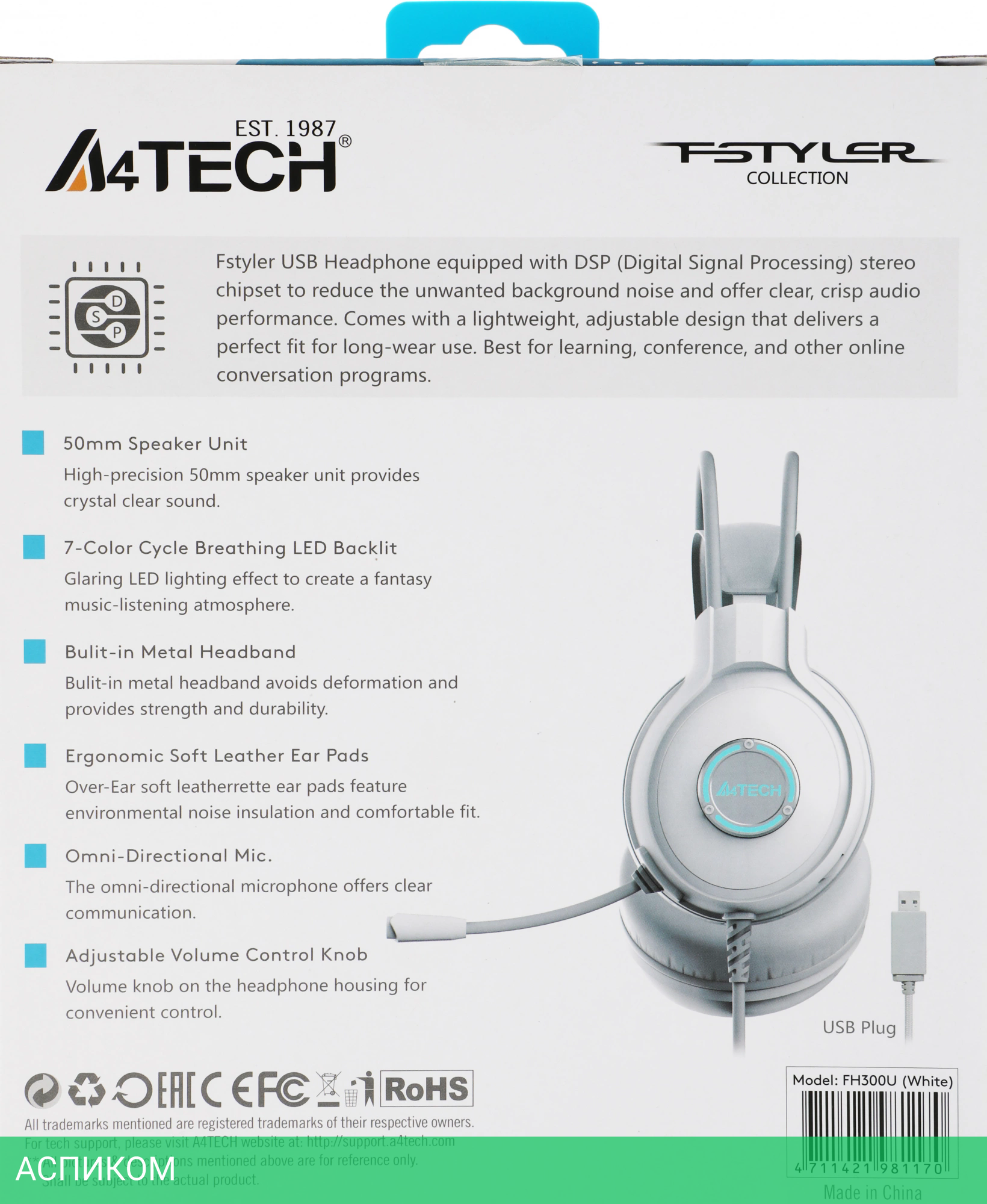 наушники с микрофоном / белый / накладные / нет / оголовье / закрытые / 20.0 / 20000.0 / пластик / искусственная кожа / да