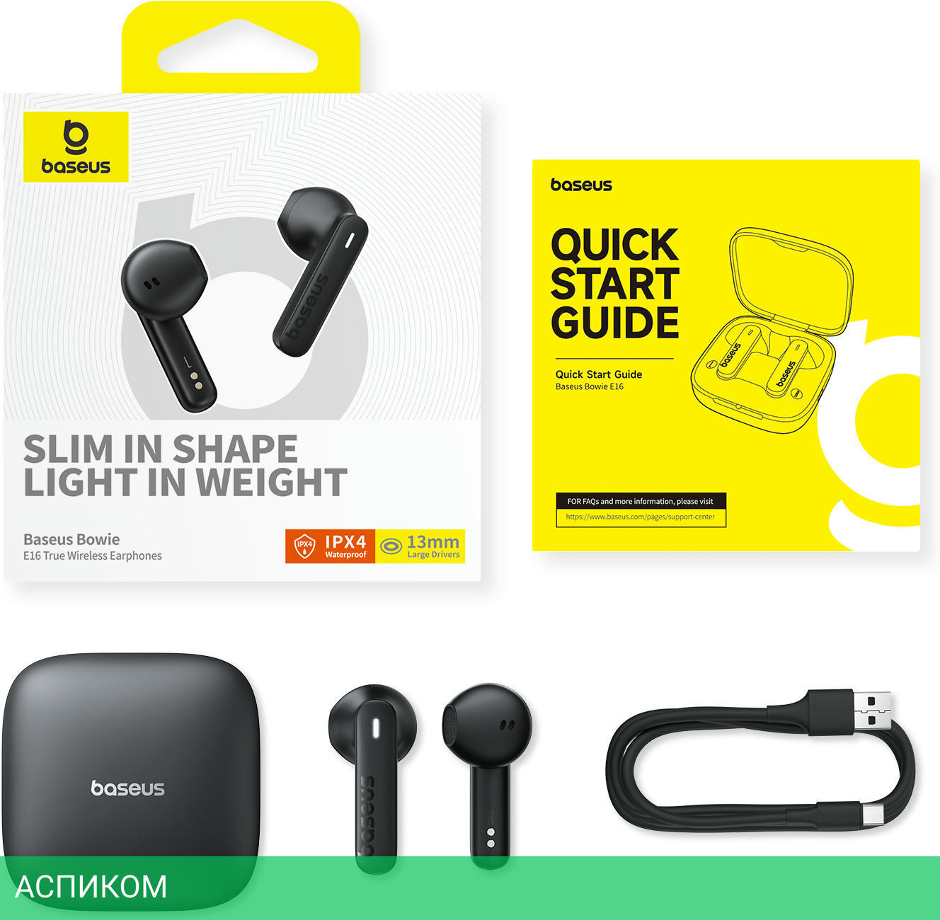 наушники, зарядный кейс, кабель зарядки, документация, упаковка