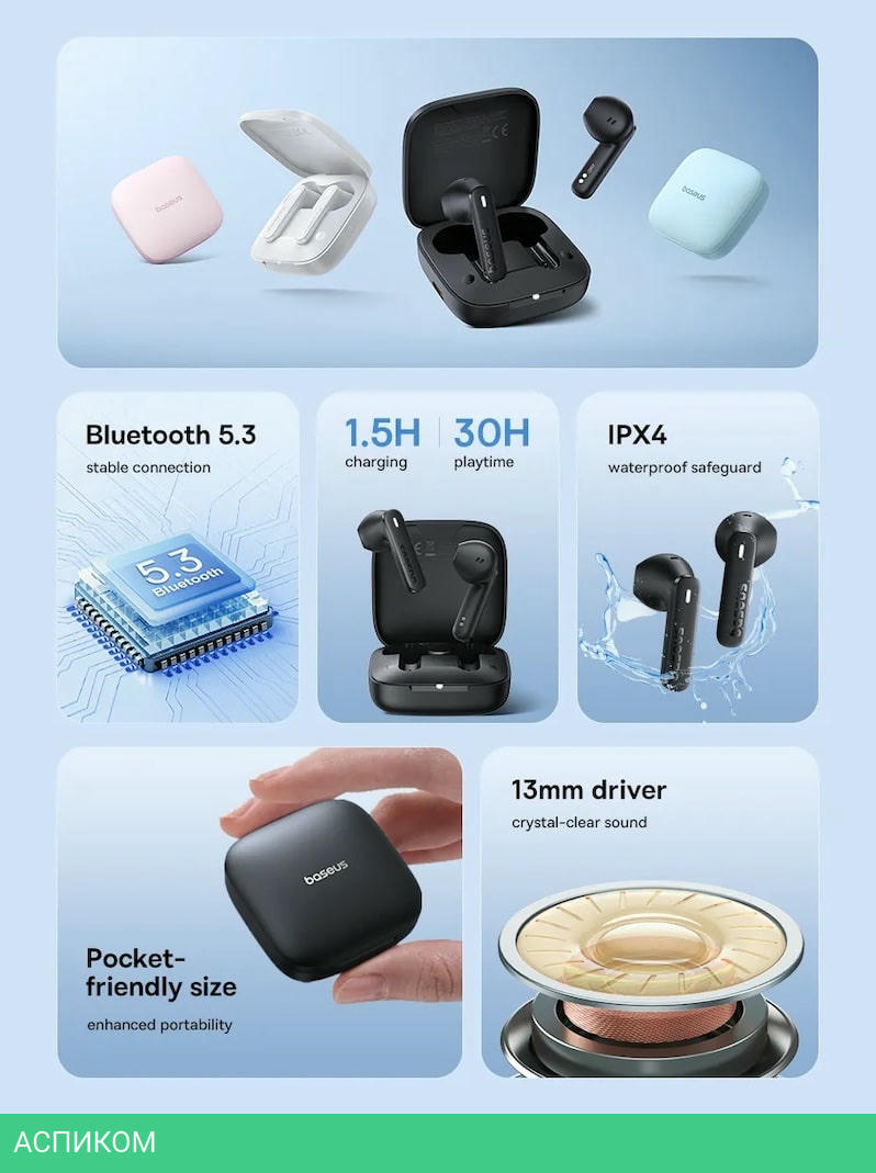 наушники / внутриканальные / да / внутри уха / черный / закрытые / полностью беспроводные (TWS) / Bluetooth / 20.0 / 20000.0 / пластик / пластик / нет / 6.0 / 30.0