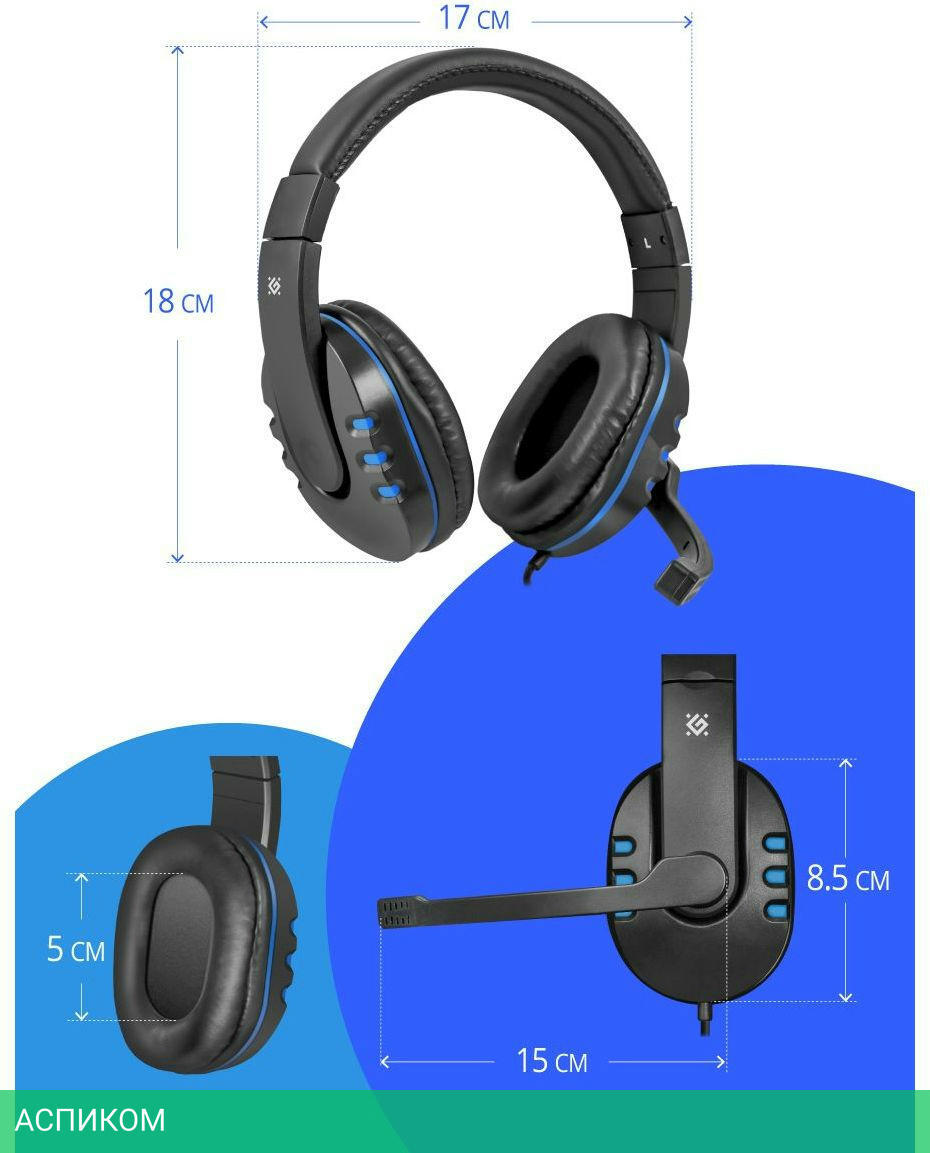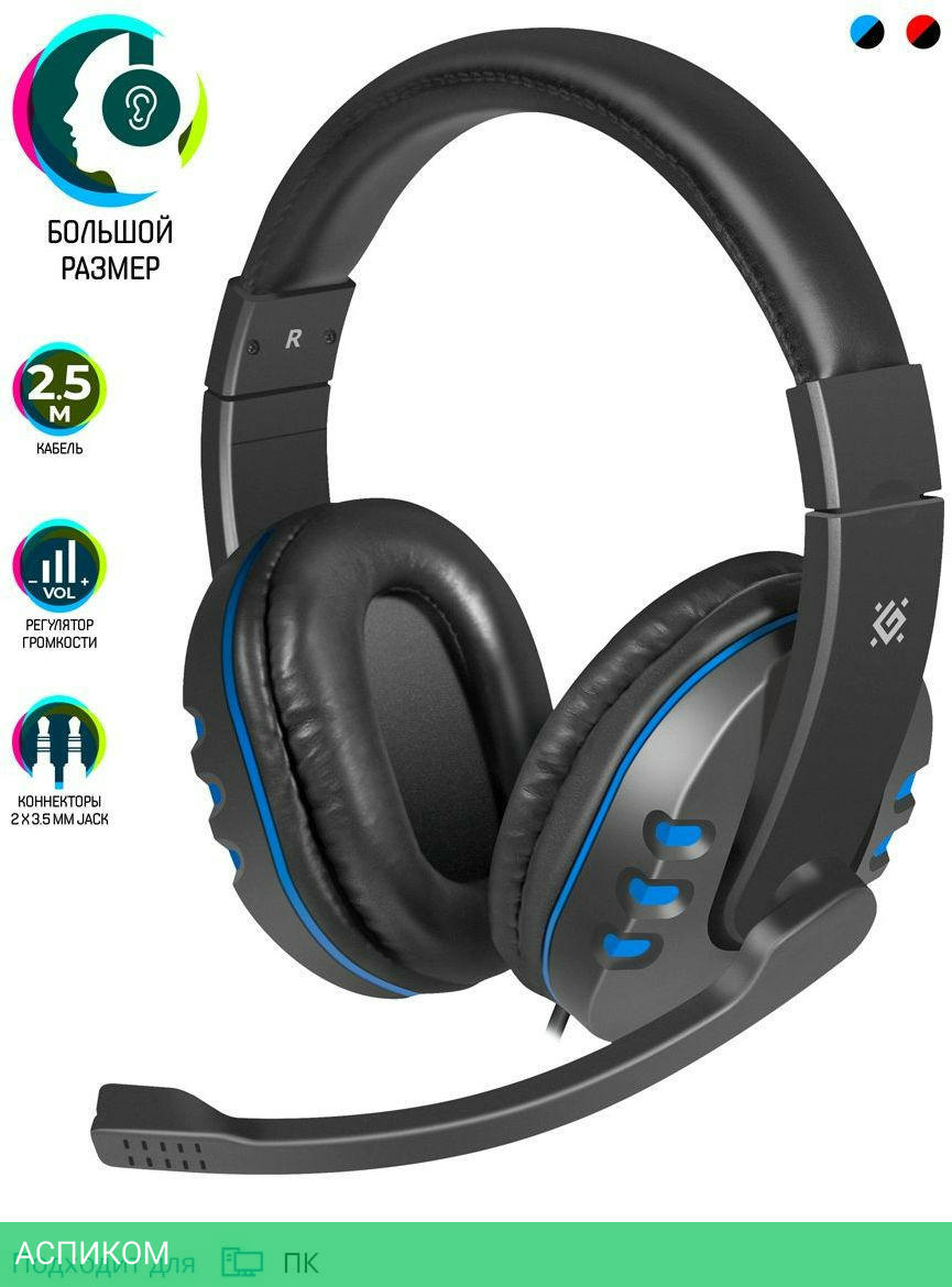 наушники с микрофоном / черный; синий / накладные / нет / оголовье / закрытые / 20.0 / 20000.0 / пластик / кожа / нет