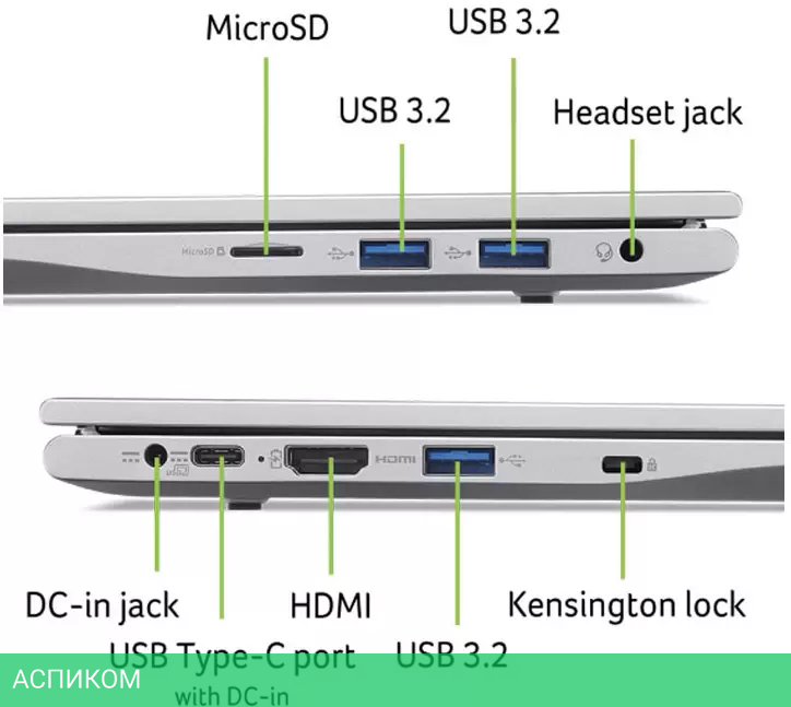 USB 3.2 Gen 2 (10 Гбит/с); USB 3.2 Gen 1 (5 Гбит/с)