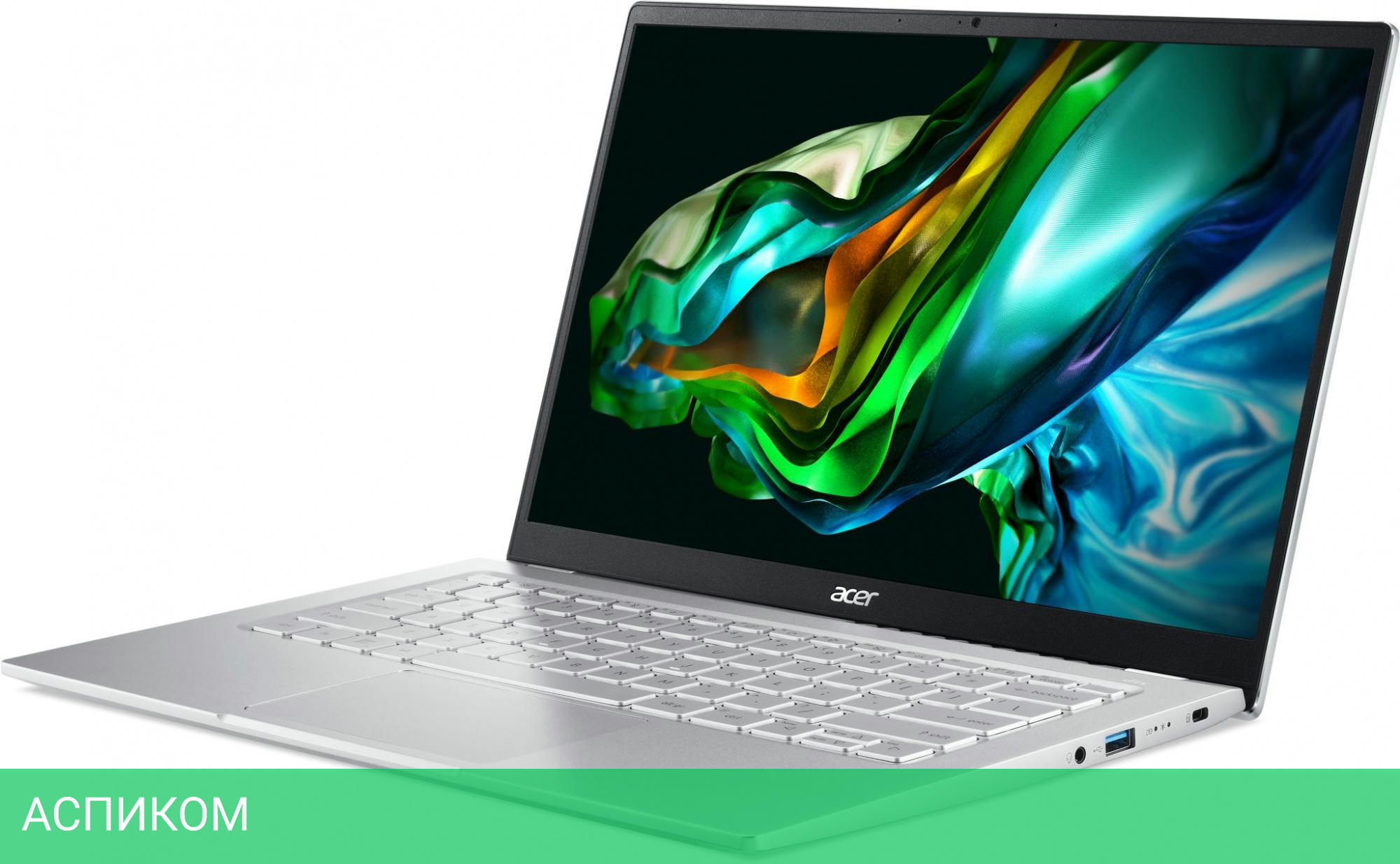 Ноутбук Acer Swift Go 14SFG14-41 (NX.KG3CD.003)/14″/IPS/1920x1080/AMD Ryzen 5 7530U/16 ГБ/SSD 512 ГБ/ENG, RUS/Backlit/Windows 11/Cam/Silver/48Вт*ч/BT/Wi-Fi