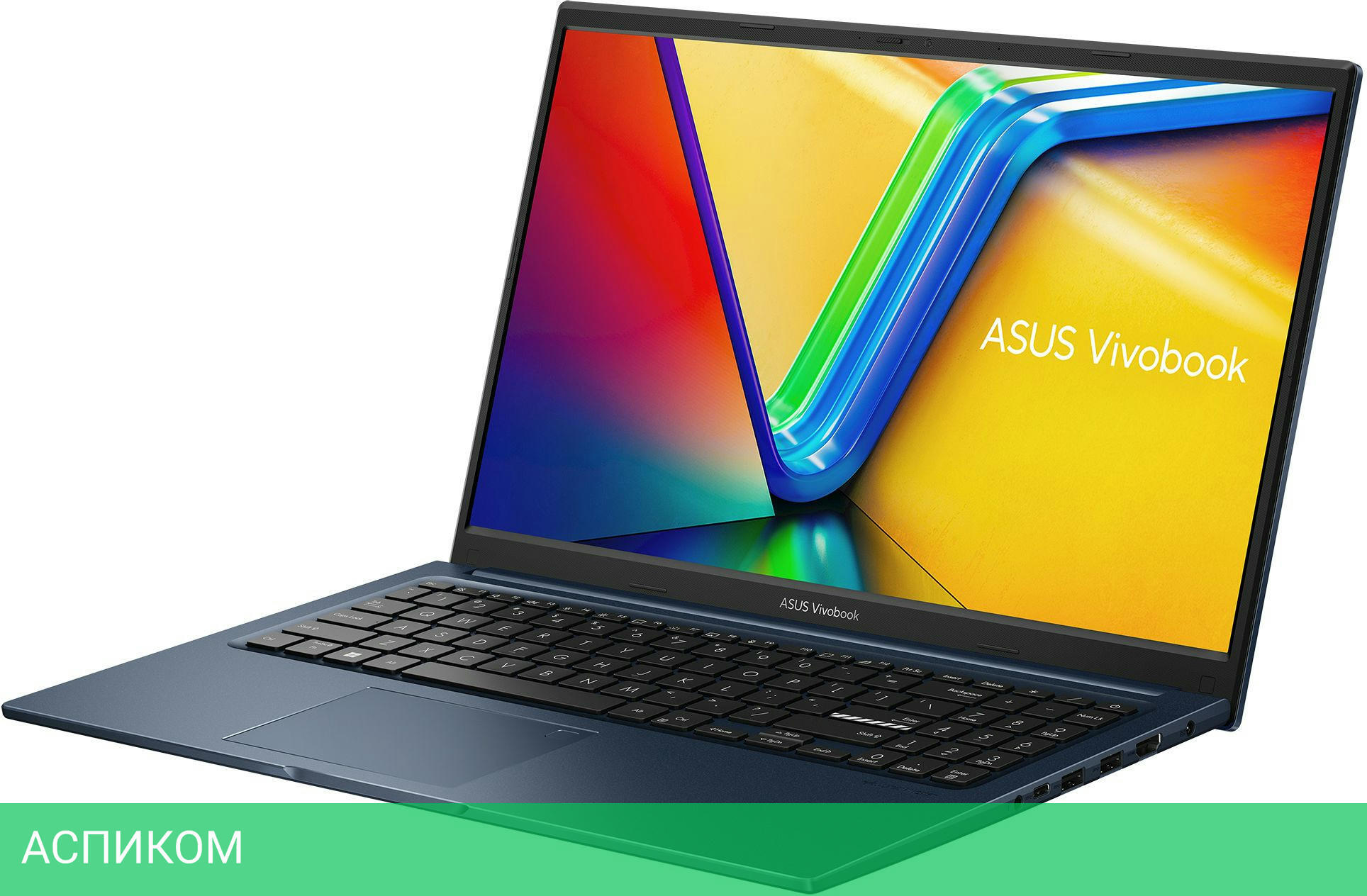 Ноутбук ASUS Vivobook 15 X1504VA-BQ312 Quiet Blue (90NB10J1-M01HX0)/15.6″/IPS/1920x1080/Intel Core i3 1315U/8 ГБ/SSD 256 ГБ/UMA/ENG, RUS/DOS/Cam/PS/Quiet Blue/42Вт*ч/BT/Wi-Fi