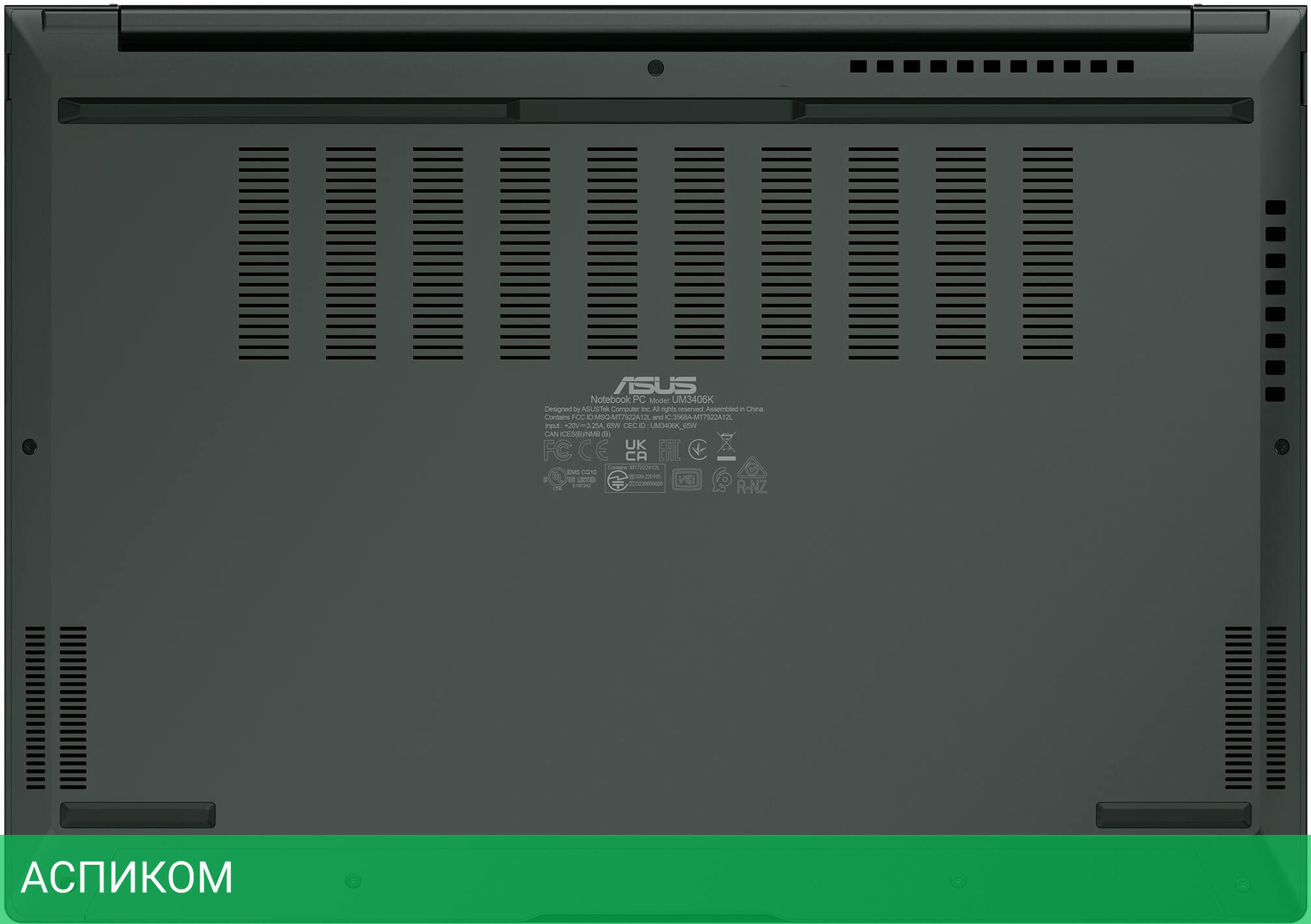 Ноутбук ASUS Zenbook 14 UM3406KA-QD213W Jade Black (90NB14U1-M00CF0)/14″/OLED/1920x1200/AMD Ryzen AI 5 340/16 ГБ/SSD 1024 ГБ/UMA/ENG, RUS/Backlit/Windows 11 Home/Cam/IR, PS/Jade Black/75Вт*ч/BT/Wi-Fi