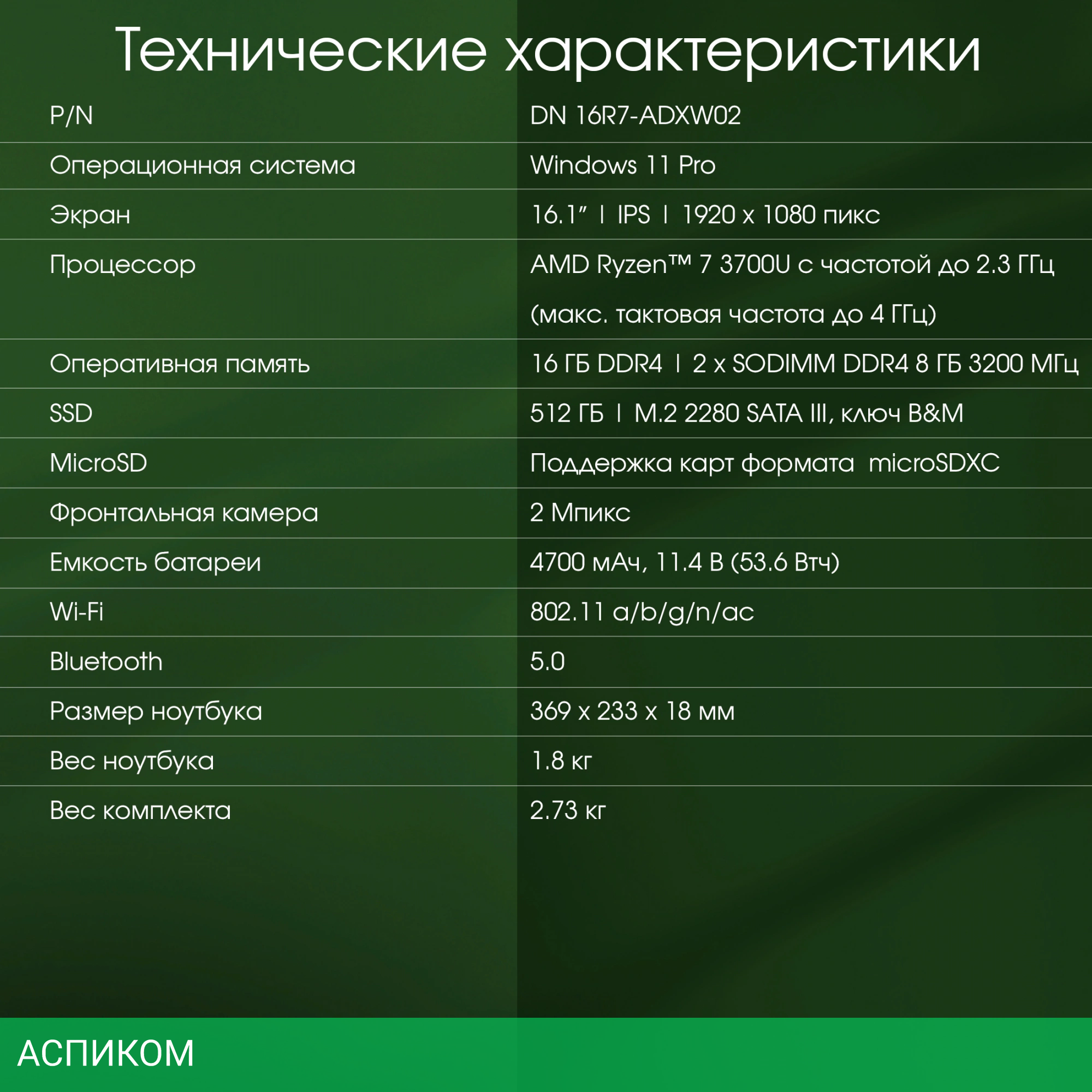 Ноутбук работает под управлением самой современной Windows 11. Аккумулятор имеет ёмкость 4700 mAh и обеспечивает несколько часов работы без подзарядки.