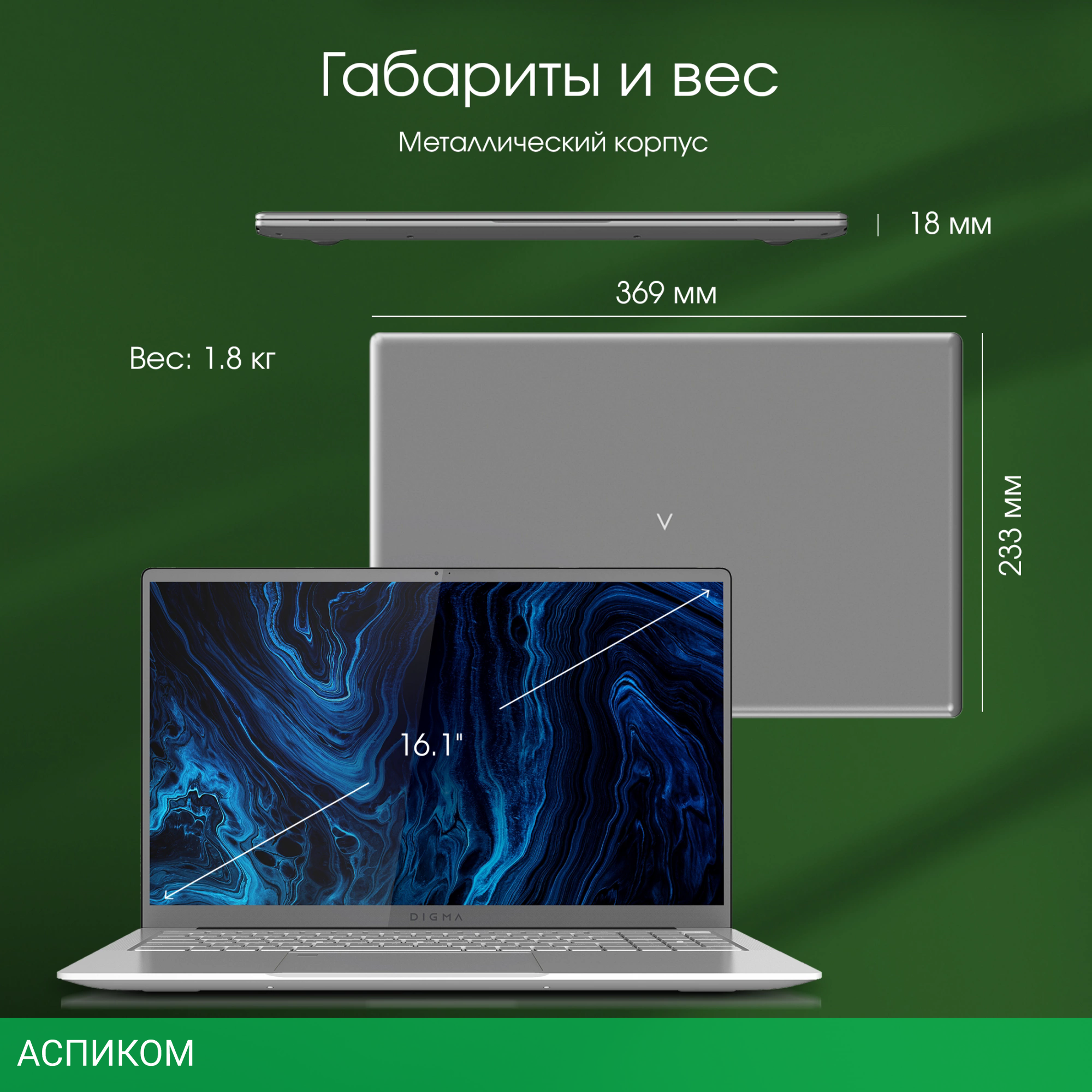 Digma Pro Sprint M – ноутбук для работы и учёбы с большим экраном и мощным процессором. Он поможет комфортно решать повседневные задачи без зависаний и нагрузки на зрение.