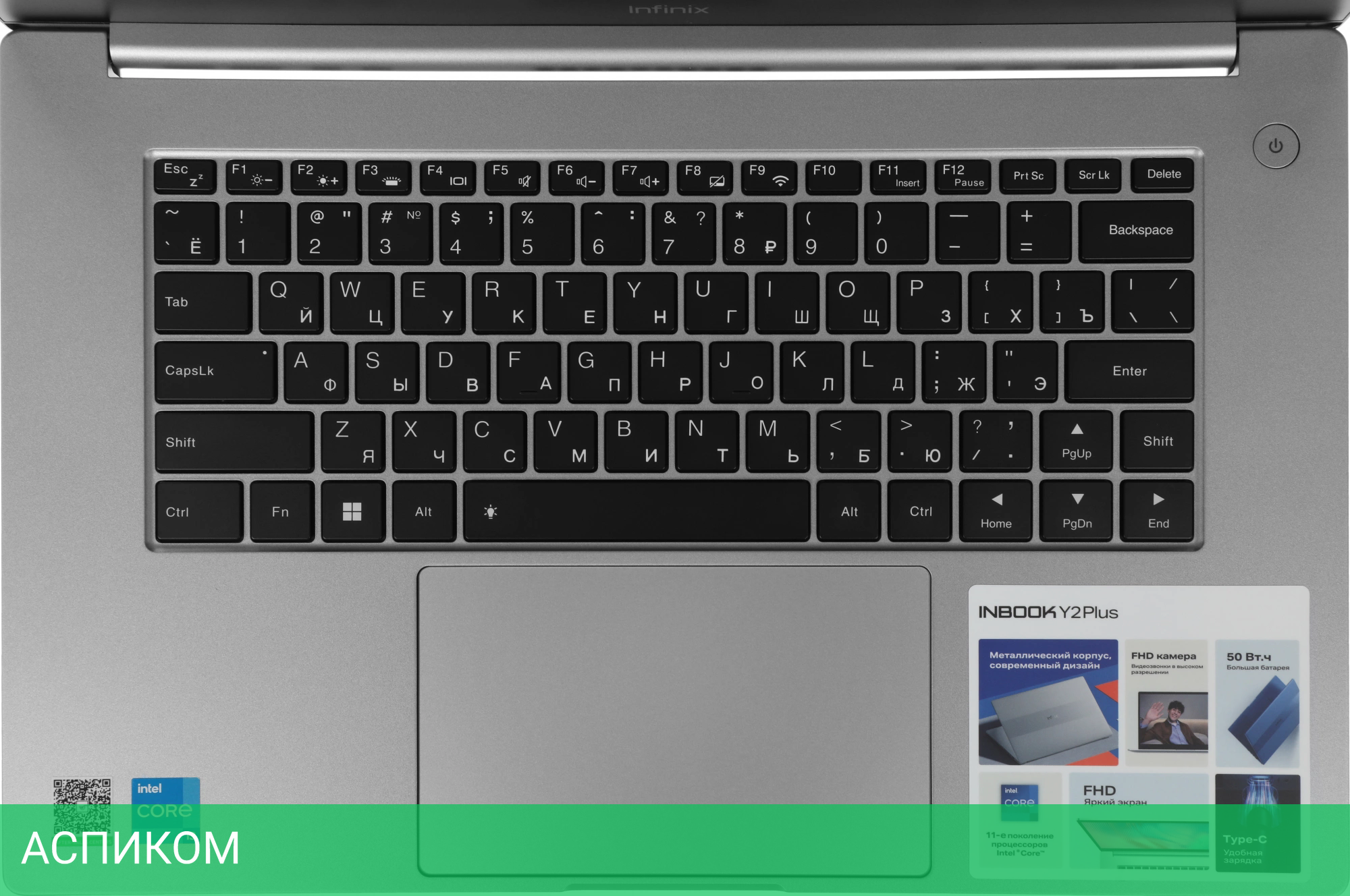 Ноутбук Infinix Inbook Y2 Plus (71008301120)/15.6″/IPS/1920x1080/Intel Core i3 1115G4/8 ГБ/SSD 256 ГБ/Intel UHD Graphics/Windows 11 Home/Cam/50Вт*ч