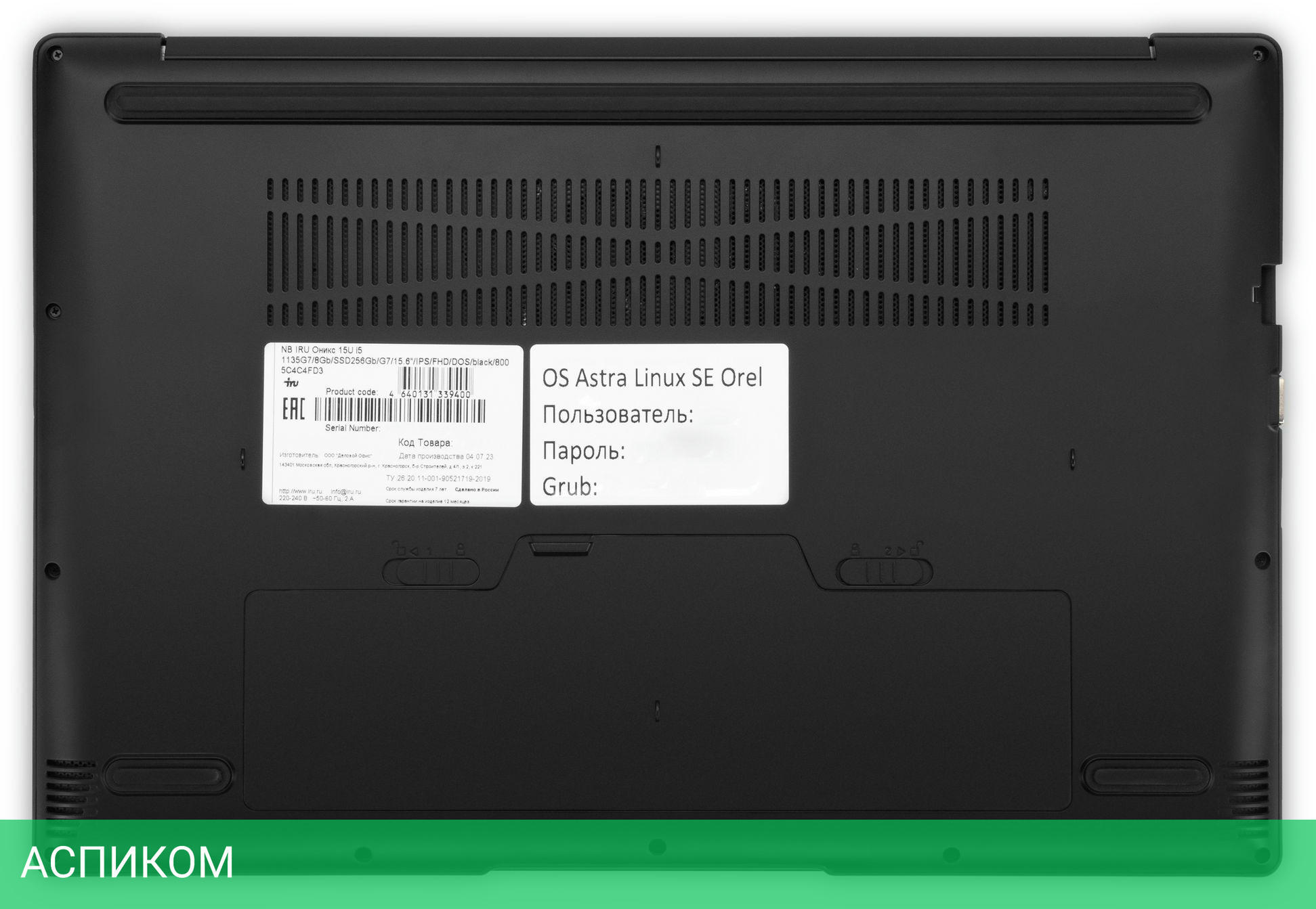 Ноутбук iRU Оникс 15U Core i5 1135G7 8Gb SSD256Gb (1923010)/15.6″/1920x1080/8 ГБ/Cam