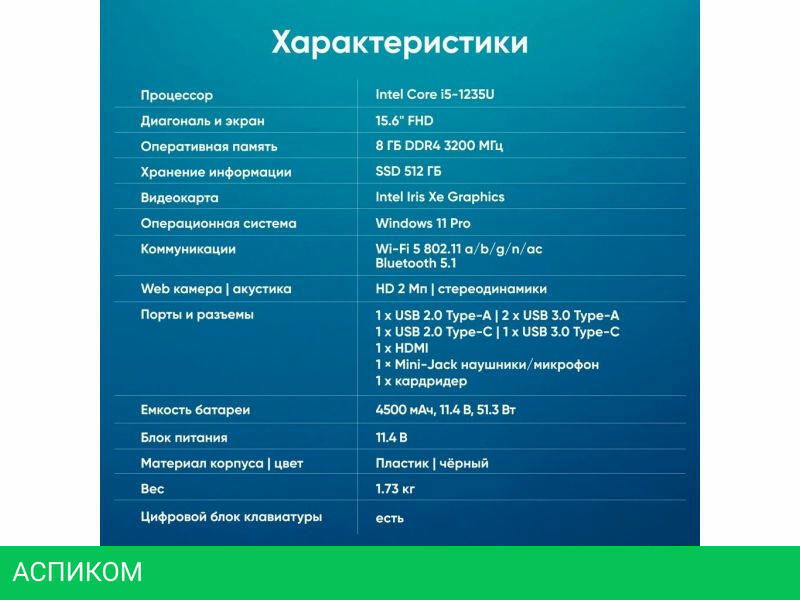 1 x SSD M.2 NVMe1 x M.2 SATA III до 1Тб SSD