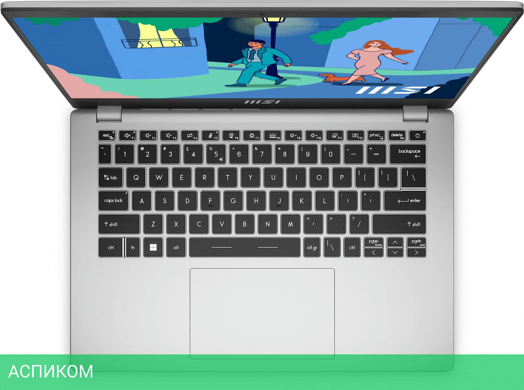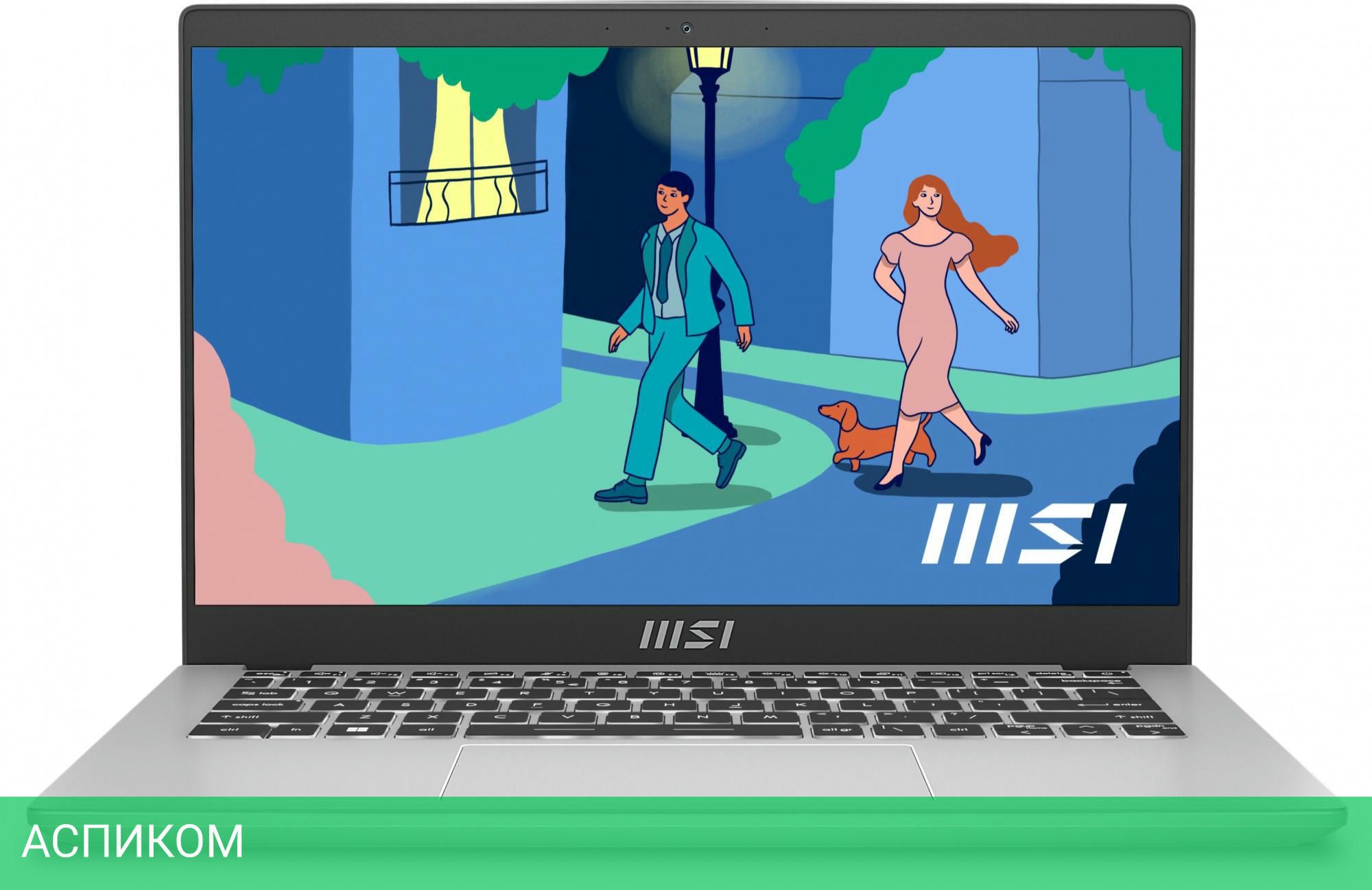 Ноутбук MSI Modern 14 C12MО-688RU Silver (9S7-14J111-688)/14″/IPS/1920x1080/Intel Core i7 1255U/16 ГБ/SSD 512 ГБ/UMA/Backlit/Windows 11 Pro/Cam/Silver/39.3Вт*ч/BT/Wi-Fi