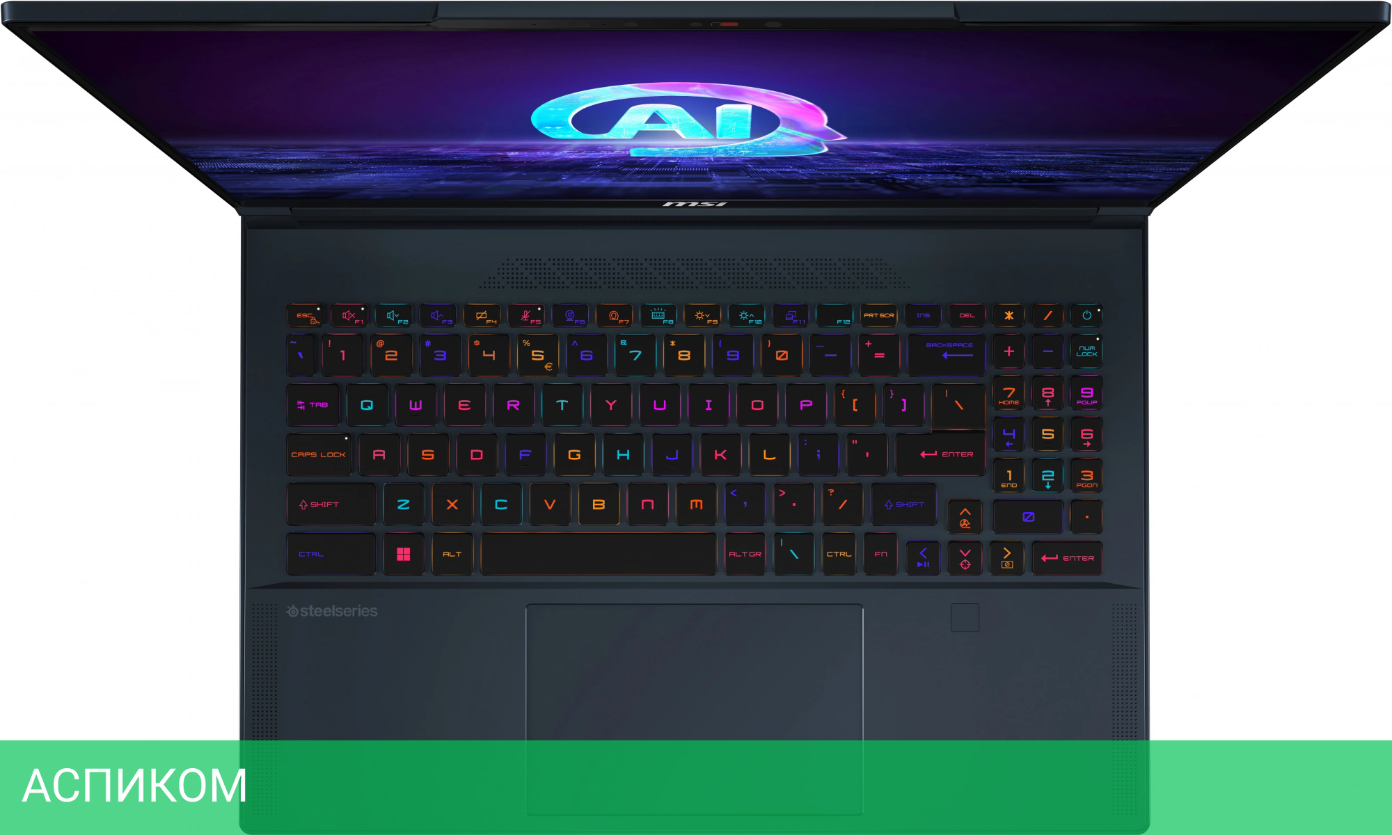 Ноутбук MSI Stealth 16 AI Studio A1VIG-062RU (9S7-15F312-062)/16″/IPS/3840x2400/Intel Core Ultra 9 185H/32 ГБ/SSD 2048 ГБ/NVIDIA GeForce RTX 4090 16 ГБ/ENG, RUS/Backlit/Windows 11/Cam/FingerPrint/Star Blue/99.9Вт*ч/BT/Wi-Fi