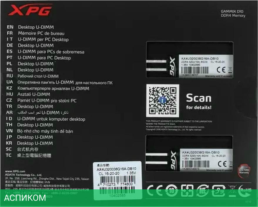 Оперативная память A-Data Gammix D10 2x8GB DDR4 PC4-25600 (AX4U32008G16A-DB10)/DDR4 DIMM/3200 МГц/CL16-20-20