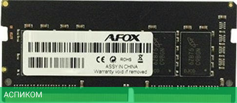 Оперативная память AFOX 8GB DDR4 PC4-21300 (AFSD48FH2P)/DDR4 SODIMM/2666 МГц
