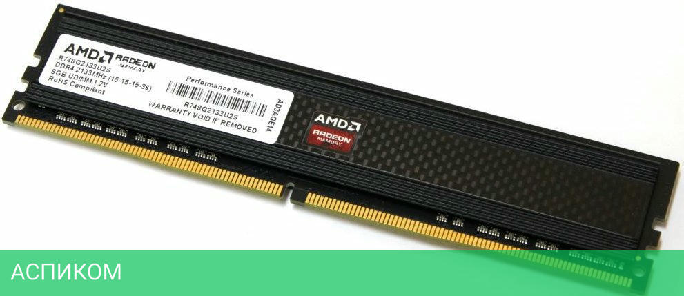 Оперативная память AMD DDR4-2133 8GB PC-17000 (R748G2133U2S-UO)/DDR4 DIMM/2133 МГц/CL15-15-15-35/OEM
