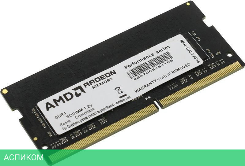 Оперативная память AMD Radeon R7 Performance Series 8GB DDR4 Black Bulk (R748G2133S2S-UO)/DDR4 SODIMM/2133 МГц/CL15-15-15-36