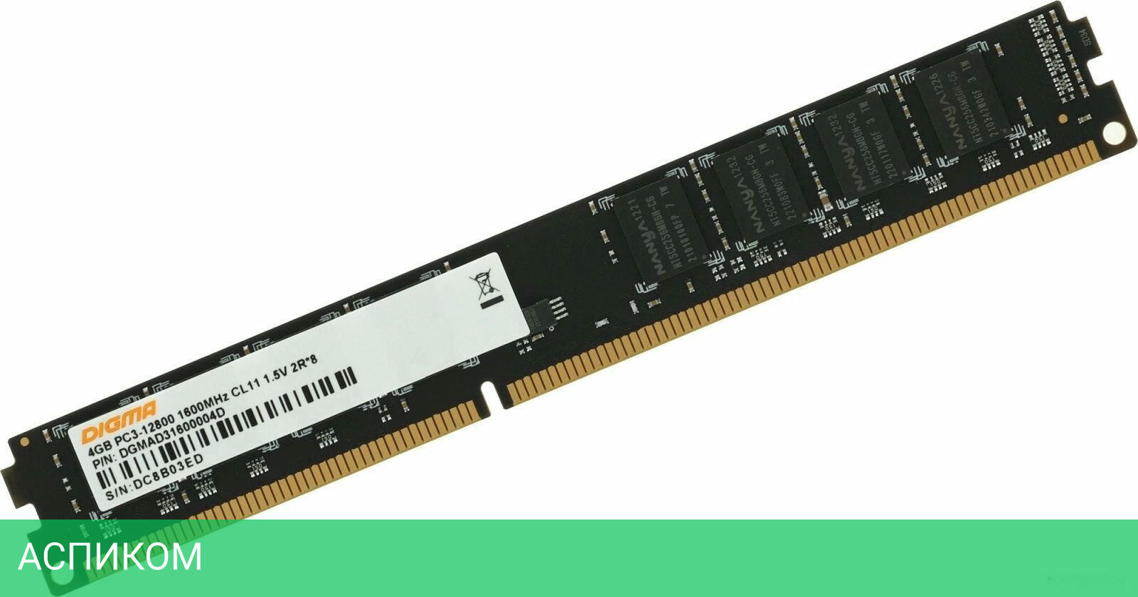 Оперативная память Digma 4GB DGMAD31600004D/DDR3 DIMM/1600 МГц/CL11-11-11-28/RTL