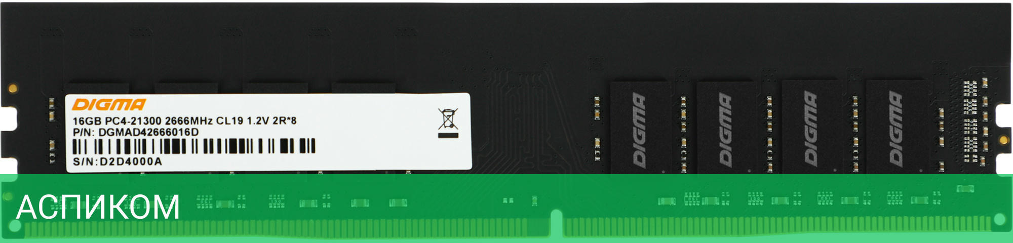 Оперативная память Digma DDR4 16Gb 2666MHz (DGMAD42666016D)/DDR4 DIMM/2666 МГц/CL19-19-19-43