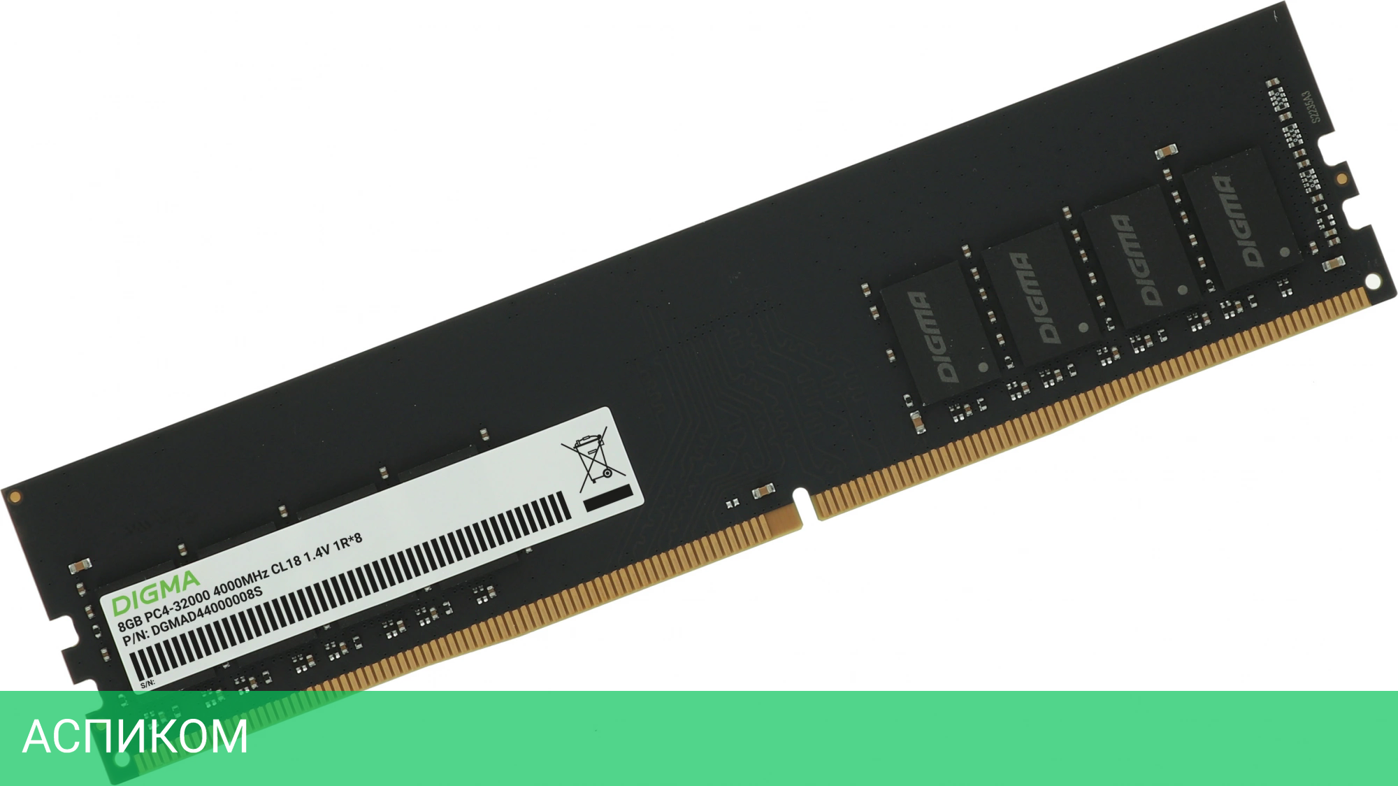 Оперативная память Digma DDR4 8GB (DGMAD44000008S)/DDR4 DIMM/4000 МГц/CL18-22-22