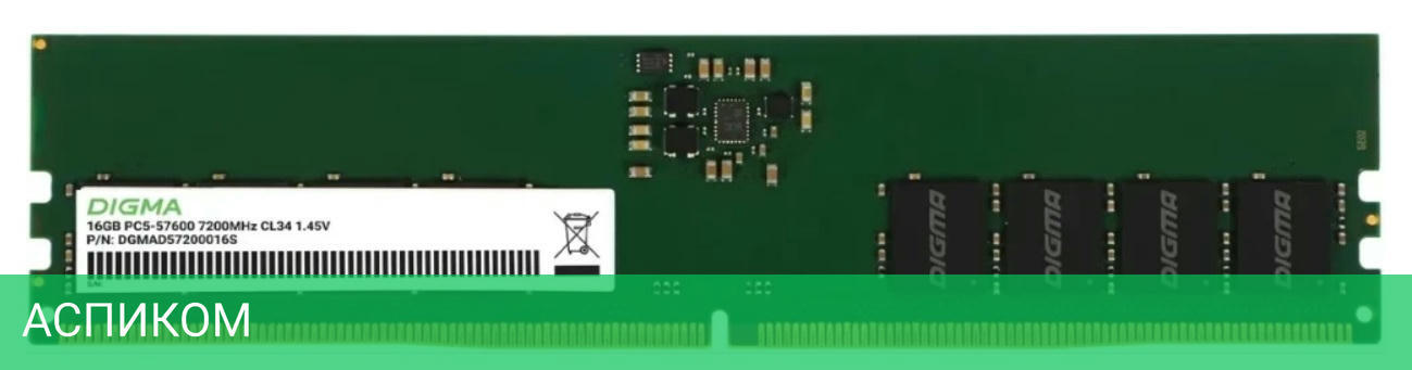 Оперативная память Digma DDR5 16GB (DGMAD57200016S)/DDR5 DIMM/7200 МГц/RTL