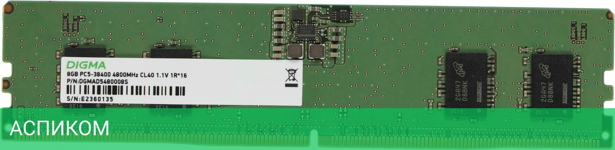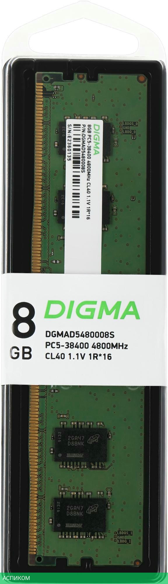 Оперативная память Digma DDR5 8Gb 4800MHz (DGMAD5480008S)/DDR5 DIMM/4800 МГц/CL40-40-40-76