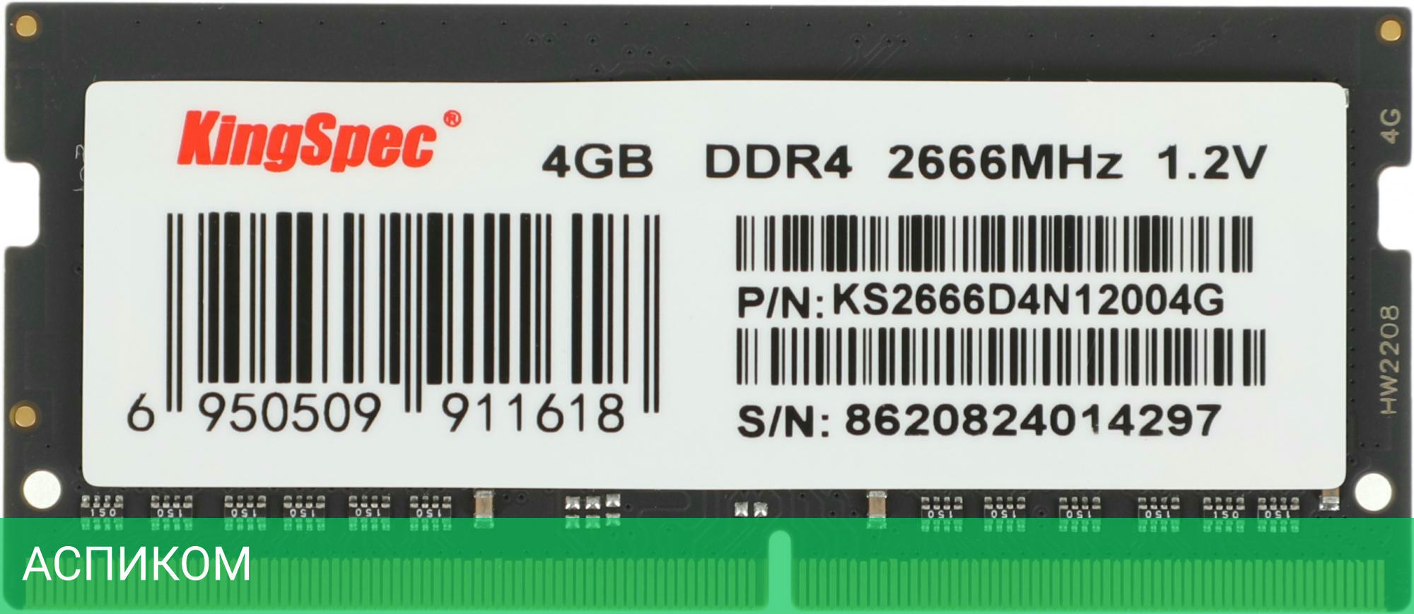 Оперативная память Kingspec 4GB DDR4 (KS2666D4N12004G)/DDR4 SODIMM/2666 МГц/CL19-19-19/RTL
