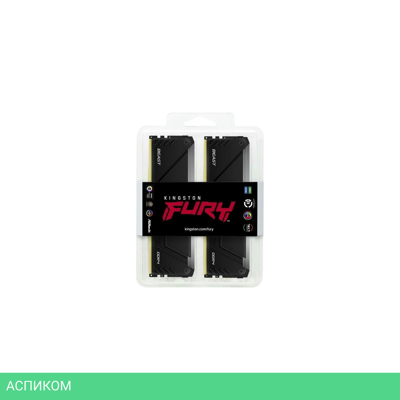 Оперативная память Kingston Fury Beast Black RGB XMP 2x8GB DDR4 (KF432C16BB2AK2/16)/DDR4 DIMM/3200 МГц/CL16-18-18