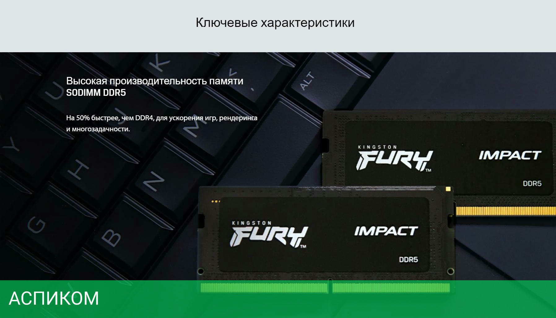 Оперативная память Kingston Fury Impact (KF548S38IB-16)/DDR5 SODIMM/4800 МГц/CL38-38-38