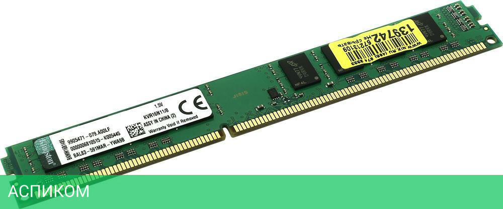Оперативная память Kingston ValueRAM 8GB DDR3 PC3-12800 (KVR16N11/8WP)/DDR3 DIMM/1600 МГц/CL11-11-11