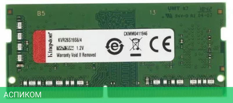 Оперативная память Kingston ValueRAM DDR4 SODIMM PC4-21300 4GB (KVR26S19S6/4)/DDR4 SODIMM/2666 МГц/CL19-19-19