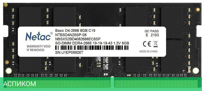 Оперативная память Netac Basic 8GB DDR4 SODIMM PC4-21300 (NTBSD4N26SP-08)/DDR4 SODIMM/2666 МГц/CL19-19-19-43