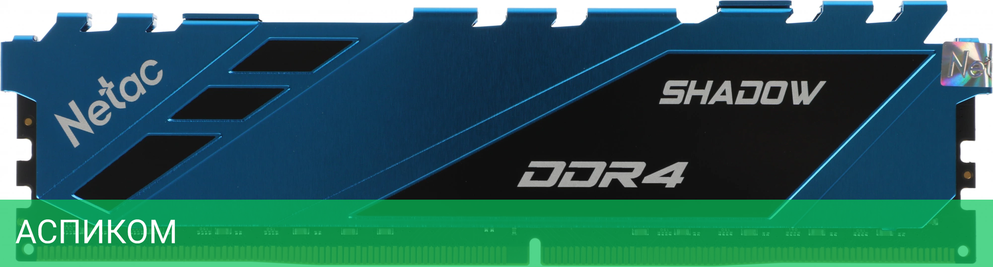 Оперативная память Netac Shadow 16Gb DDR4 Blue (NTSDD4P26SP-16B)/DDR4 DIMM/2666 МГц/CL19-19-19-43