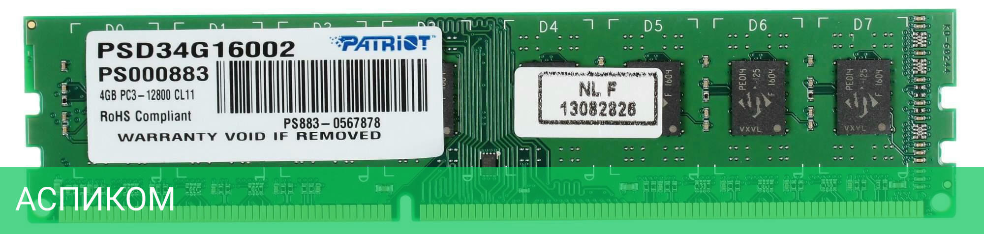 Оперативная память Patriot DDR3-1600 4GB PC-12800 (PSD34G16002)/DDR3 DIMM/1600 МГц/CL11-11-11-28