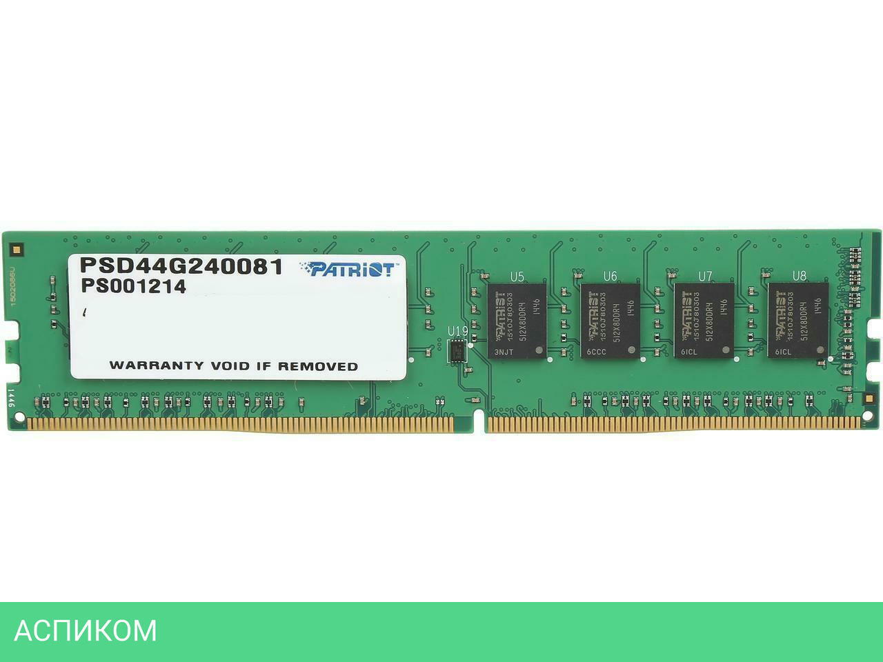 Оперативная память Patriot DDR4-2400 4GB PC-19200 (PSD44G240081)/DDR4 DIMM/2400 МГц/CL17-17-17-39