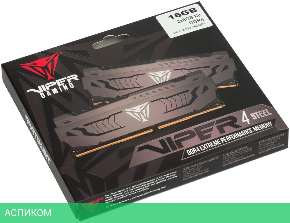 Оперативная память Patriot DDR4 2х8Gb RTL (PVS416G373C7K)/DDR4 DIMM/3733 МГц/CL18-18-18-43