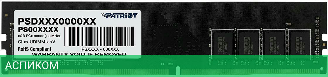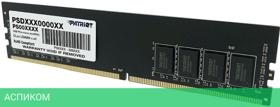 Оперативная память Patriot DDR4 8GB Signature RTL (PSD48G26662)/DDR4 DIMM/2666 МГц/CL19-19-19-43/RTL