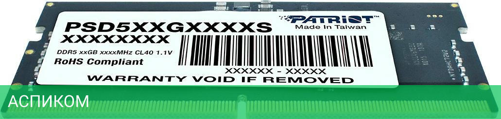 Оперативная память Patriot DDR5 16GB 4800MHz (PSD516G480081S)/DDR5 SODIMM/4800 МГц/CL40-40-40-77/RTL