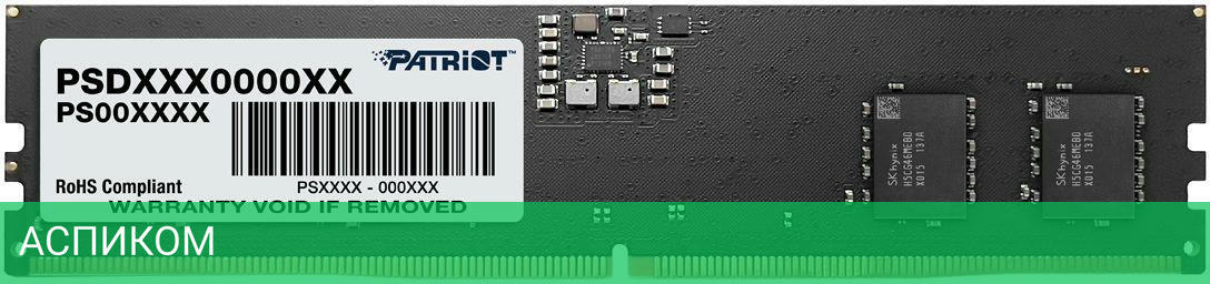 Оперативная память Patriot DDR5 16Gb 4800MHz Signature RTL PC5-38400 CL40 DIMM ECC 288-pin 1.1В single rank (PSD516G480081)/DDR5 DIMM/4800 МГц/CL40-40-40