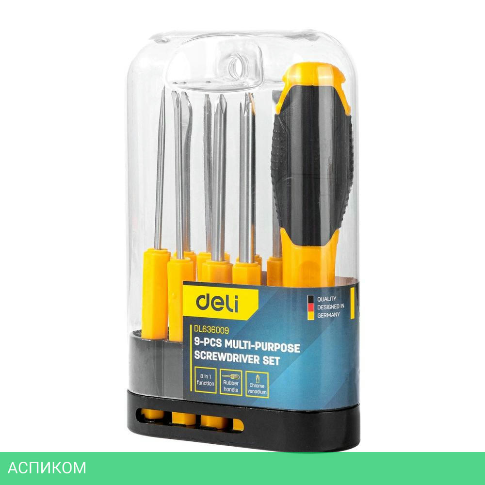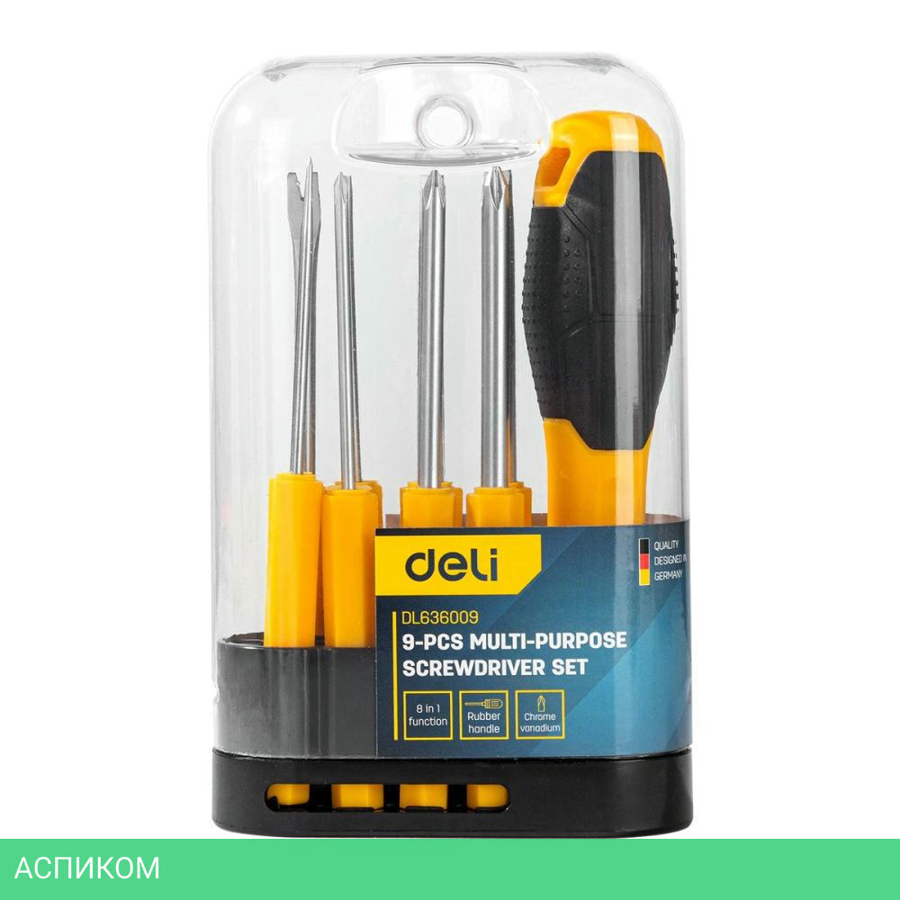 отвертка с набором оснастки / 9 / прямой шлиц Slotted (SL); двухштырьковый (SP); крестовой Philips (PH2)