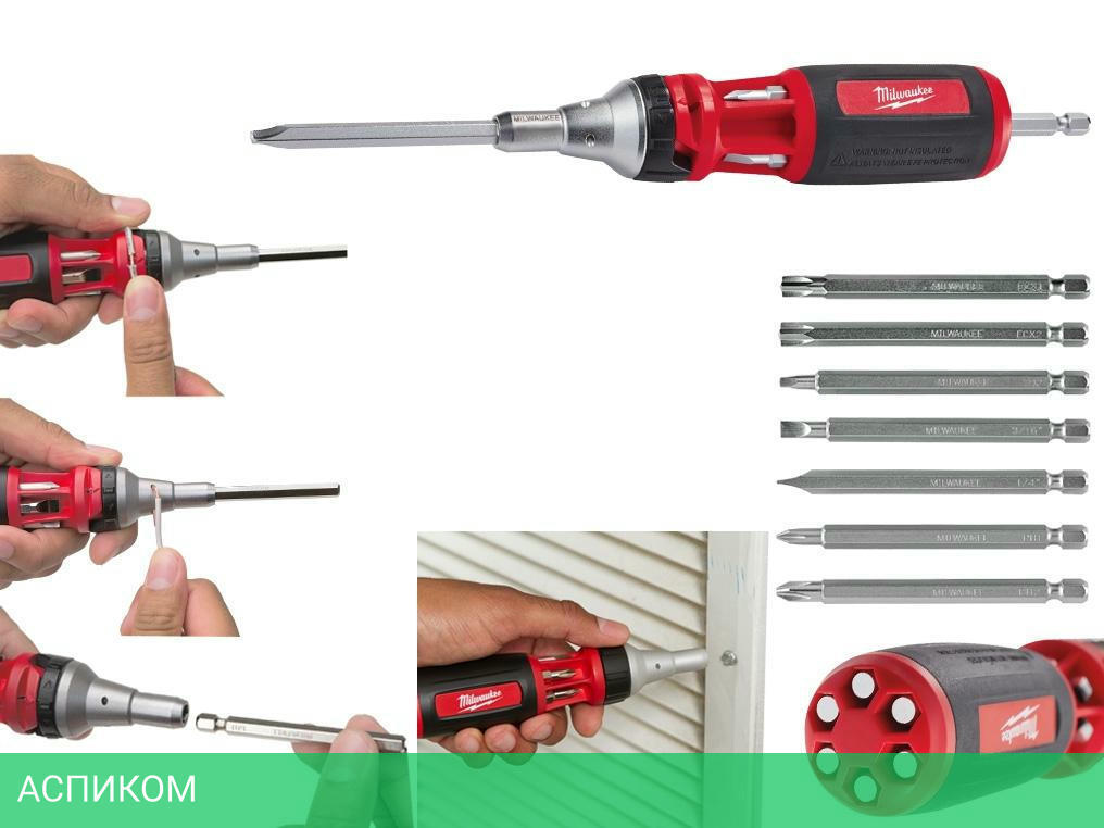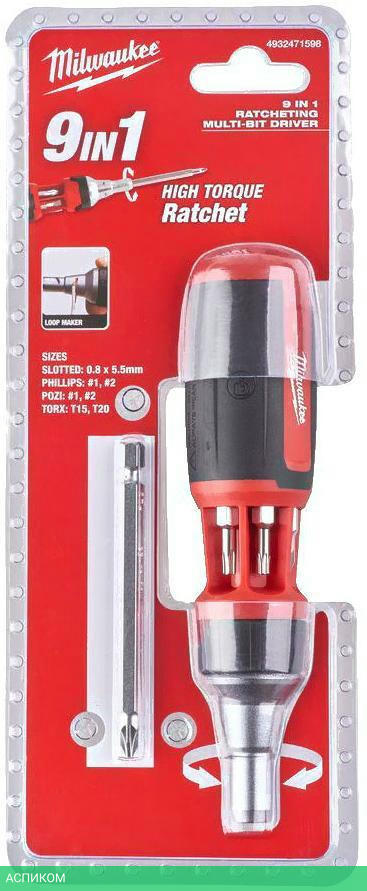 отвертка с набором оснастки / 9 / прямой шлиц Slotted (SL); крестовой Philips (PH1); звездочкой Torx (T); крестовой Philips (PH2); крестовой с насечками Pozidriv (PZ1); крестовой с насечками Pozidriv (PZ2)