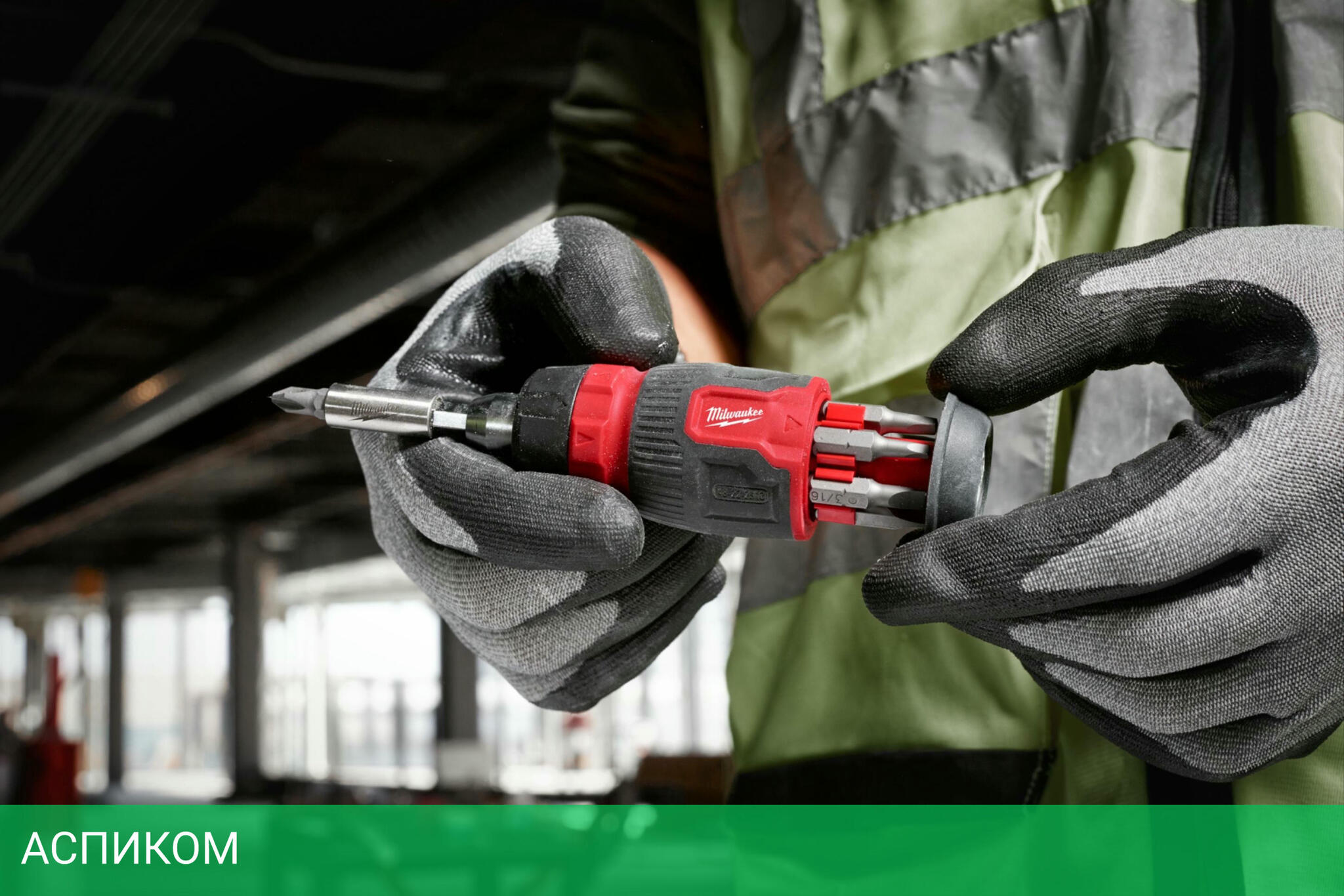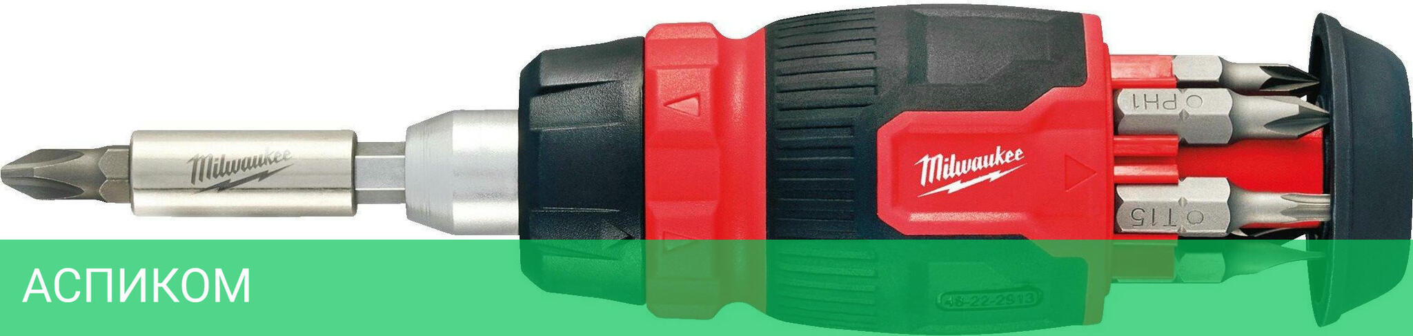 отвертка с набором оснастки / 8 / прямой шлиц Slotted (SL); крестовой Philips (PH1); звездочкой Torx (T); крестовой Philips (PH2); крестовой с насечками Pozidriv (PZ1); крестовой с насечками Pozidriv (PZ2)