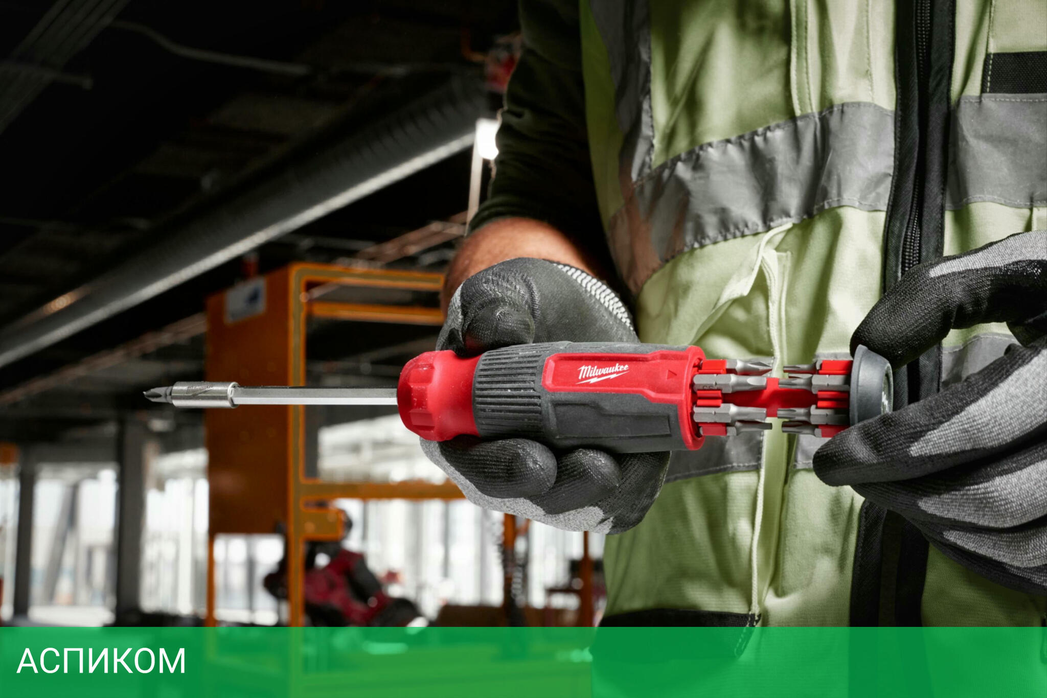 отвертка с набором оснастки / 14 / прямой шлиц Slotted (SL); крестовой Philips (PH1); шестигранный HEX (H); крестовой Philips (PH2); крестовой с насечками Pozidriv (PZ1); крестовой с насечками Pozidriv (PZ2)