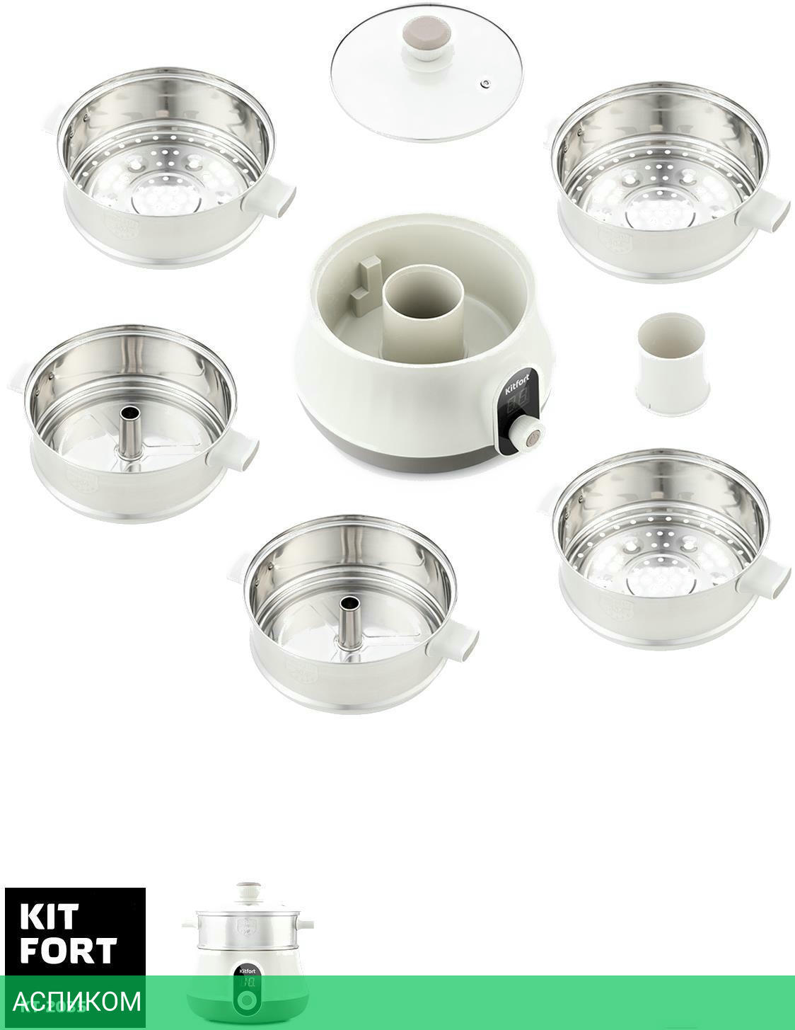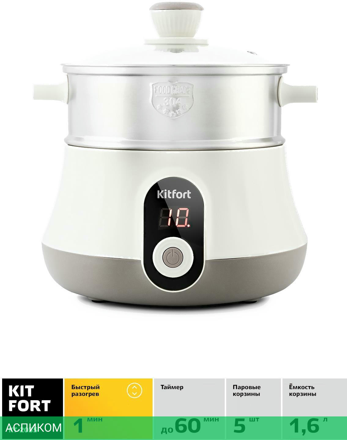 белый / пароварка стационарная / 600.0 / 8.0 / 5 / электронное