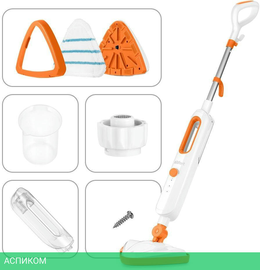 паровая швабра / бытовое / ручной / 1300.0 / белый; оранжевый / 0.36
