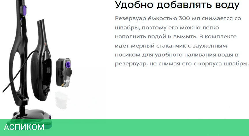 паровая швабра / черный / бытовое / ручной / 1300.0 / 0.3