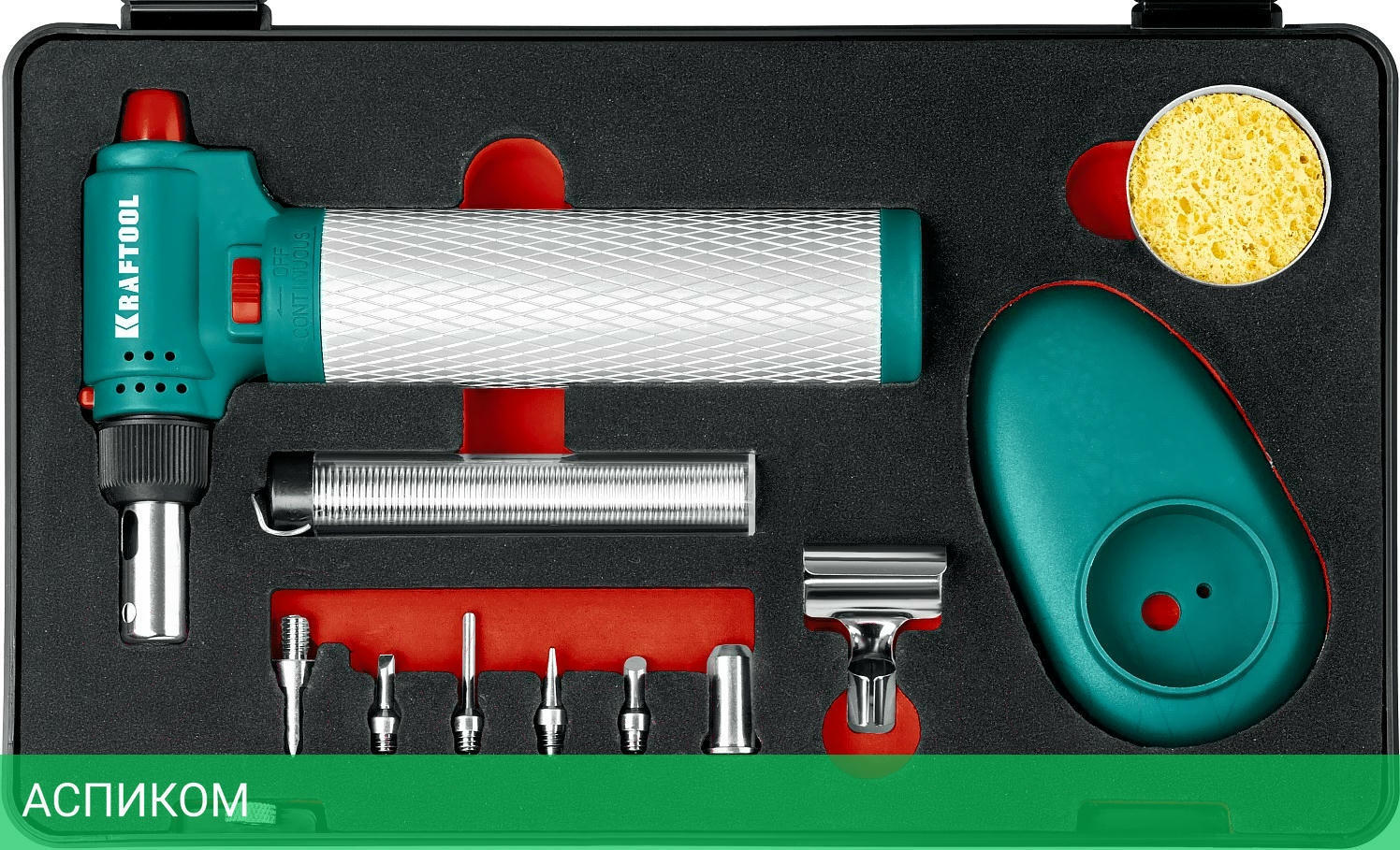 насадки (7 шт.), подставка, припой (15 г), коврик (для чистки жал)