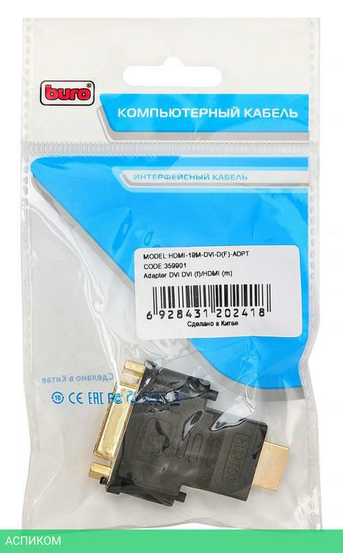 переходник / соединение компонентов ПК / черный / DVI; HDMI