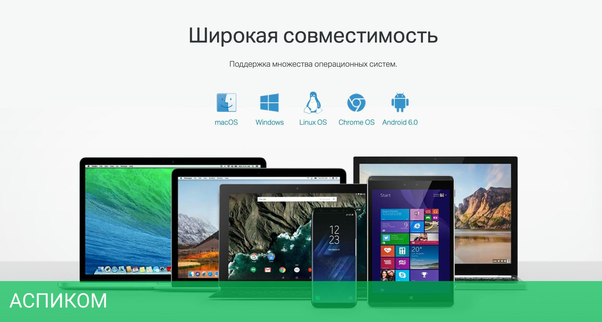 совместимость Windows, macOS, Chrome OS, Linux OS и Android 6.0