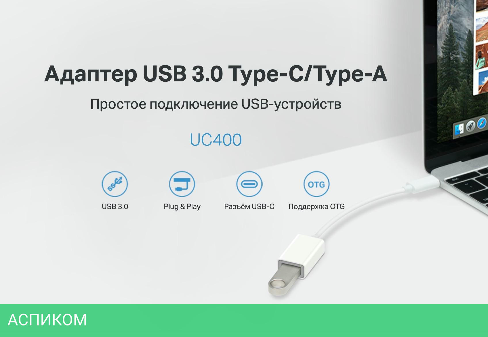 адаптер / для компьютера; для сетевого оборудования; для смартфонов и планшетов / передача данных / белый / USB 3.0 Type-C; USB 3.0 Type-A / 0.1