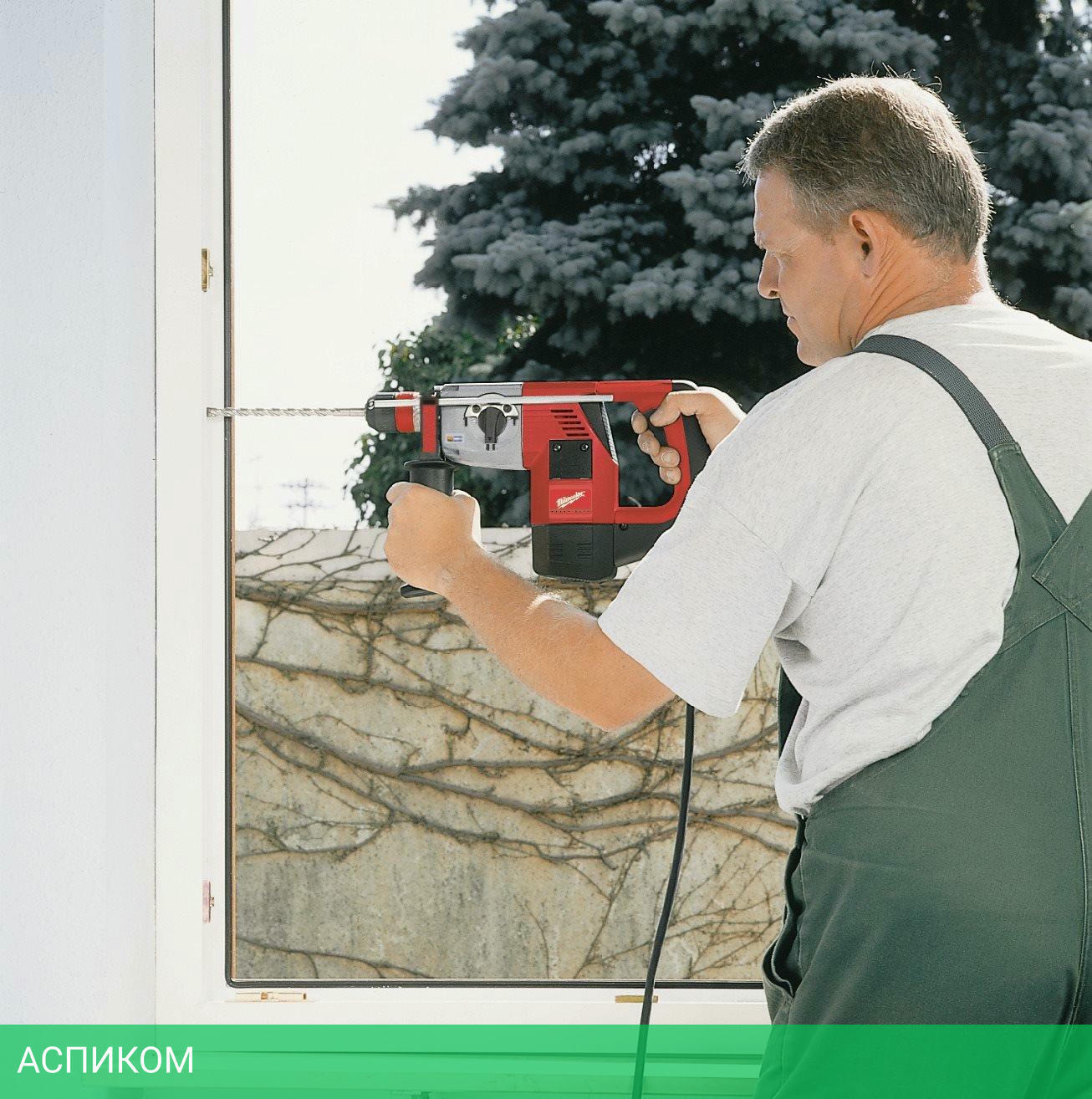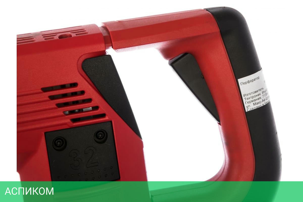 перфоратор, кейс, передняя рукоятка с металлическим ограничителем глубины, смазка для буров, адаптер с бесключевым патроном 13 мм, упаковка